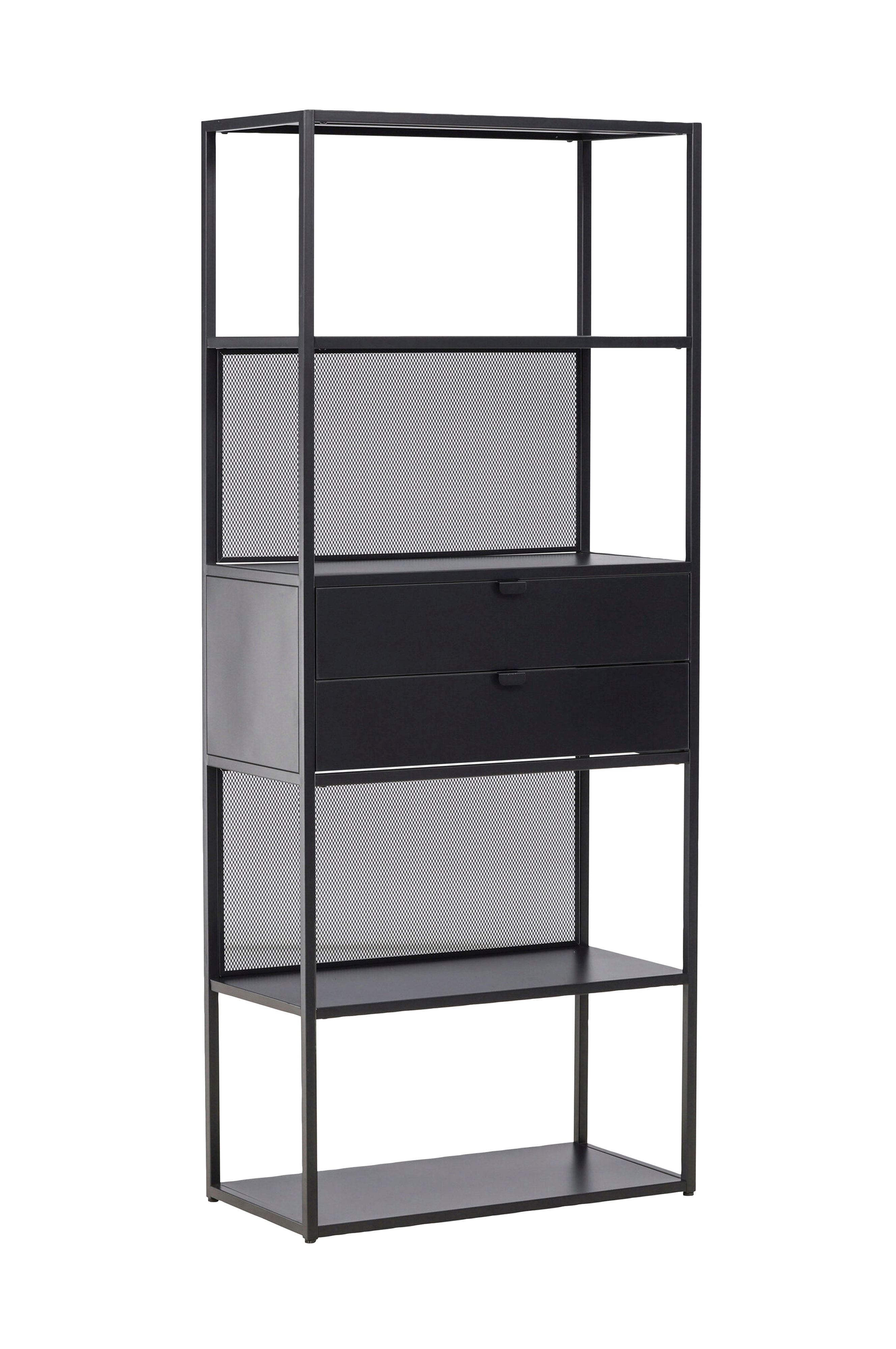 Sisusta fiksusti ja tyylikkäästi Santiago-sarjan kätevällä säilytyshyllyköllä! Hyllykössä on neljä avointa hyllytasoa, jotka voit koristella ja täyttää persoonallisesti ja tyylikkäästi. Somista hyllykköä kynttilälyhdyillä, maljakoilla, viherkasveilla ja kirjoilla kodikkaan vaikutelman saamiseksi. Hyllykössä on myös keskellä laatikot, joihin voit piilottaa pienet käyttöesineet ja pitää näin järjestystä yllä kotona. Teräksestä valmistettu Santiago kannattelee kevyesti suosikkitavarasi. Tukeva rakenne takaa, että hyllykkö kestää pitkään käytössä ja on turvallinen arvotavaroillesi. Hyllykkö tuo persoonallista ilmettä sisustukseesi. Sen kapea ja minimalistinen muotoilu sulautuu kaikkiin huoneisiin, olohuoneesta makuuhuoneeseen, ja luo harmonista tunnelmaa. Anna Santiagon auttaa sinua järjestämään kotisi. Helpota elämää pitämällä tavarasi siististi järjestyksessä ja anna huoneelle samalla hienostunut ja kodikas ilme. Tässä tuotteessa muoto ja toiminto kohtaavat parhaalla mahdollisella tavalla!