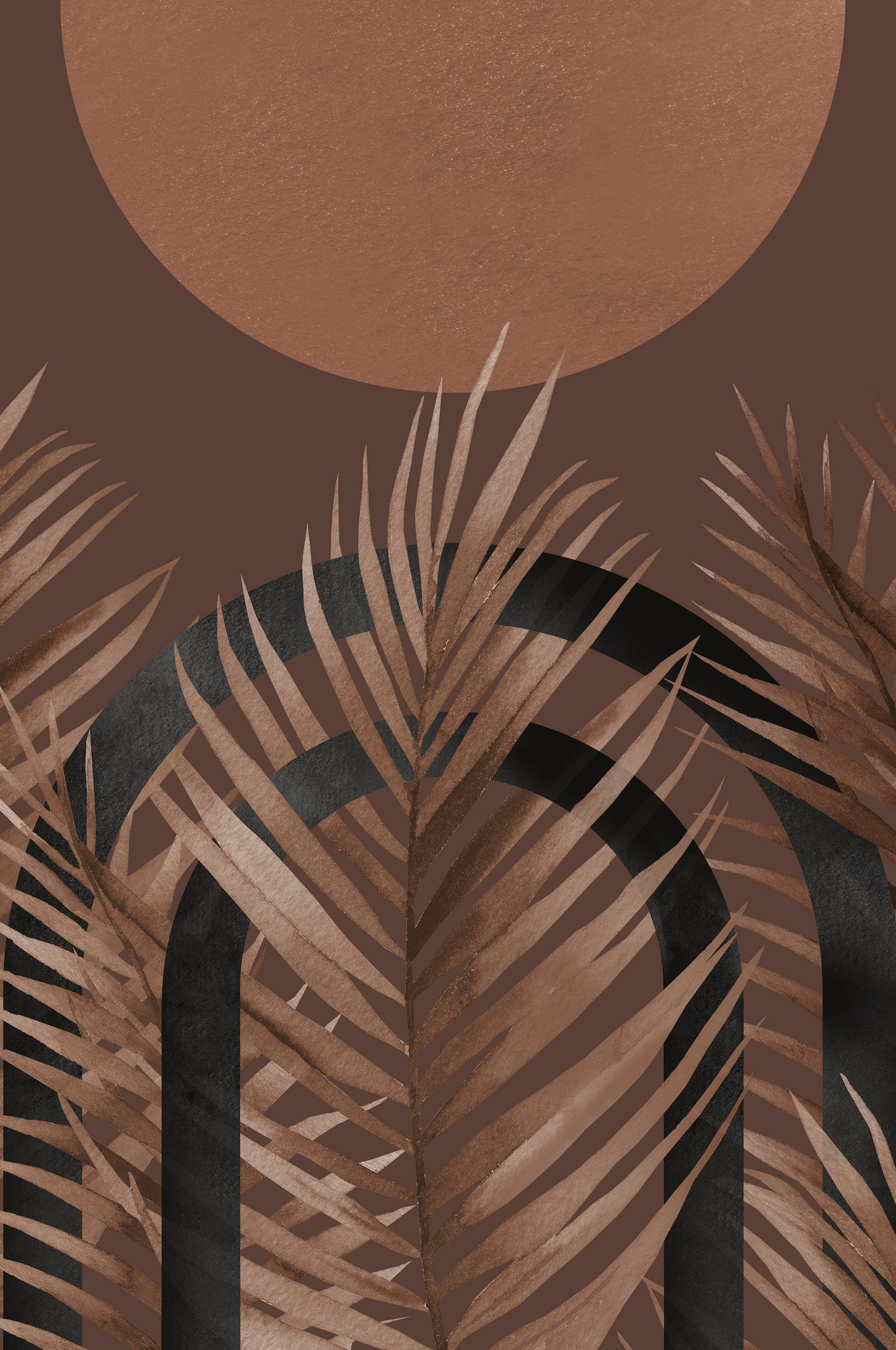 Ihastuttava abstrakti taidejuliste, jossa muodot, värit ja struktuurit yhdistyvät viehättäväksi kokonaisuudeksi. Väreinä pehmeää ja maanläheistä ruskeaa ja beigeä! Muodot esittävät aurinkoa ja kasvillisuutta ja luovat nopeasti kutsuvaa tunnelmaa. Modernit värit tekevät painokuvasta tyylikkään ja ajattoman yksityiskohdan!