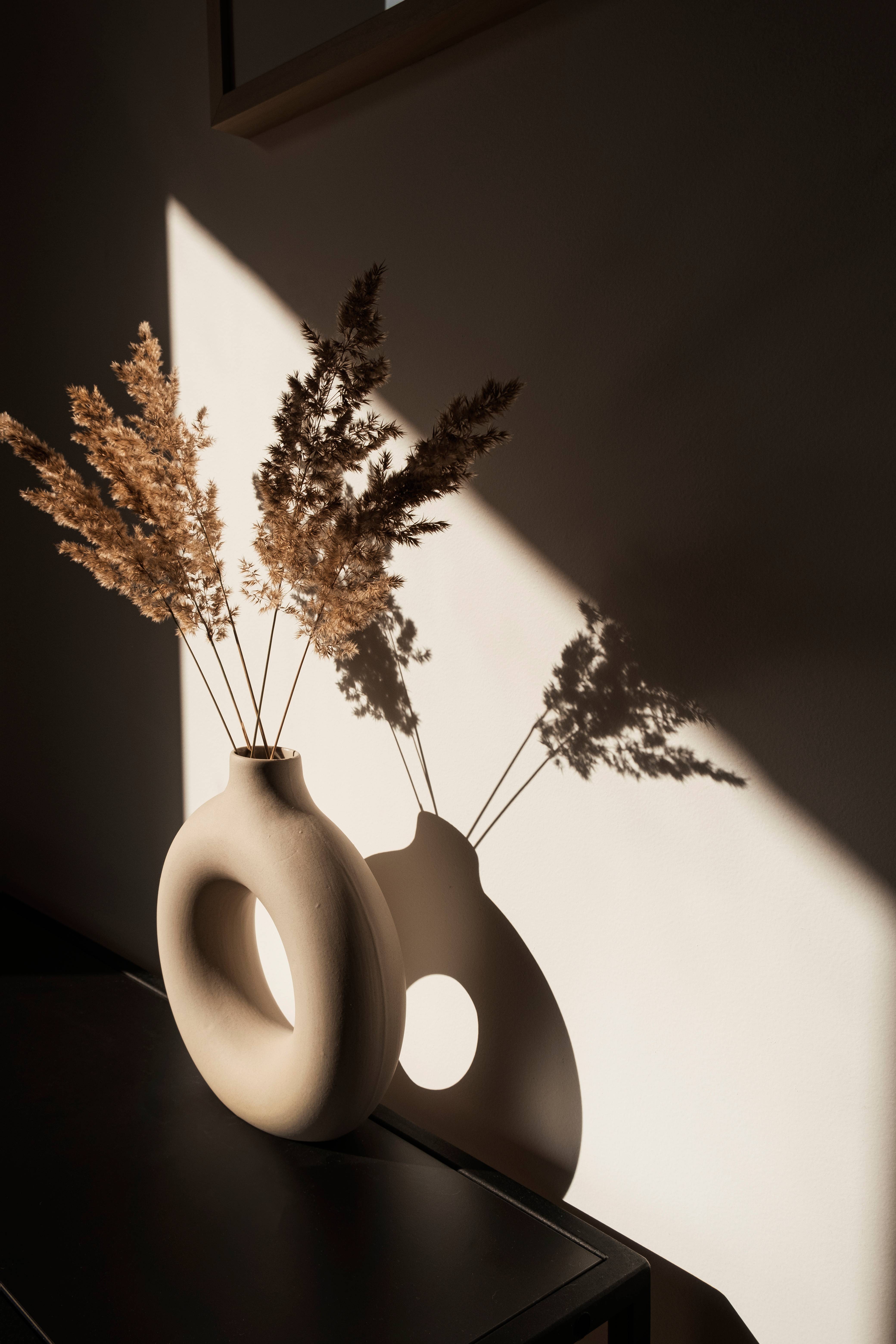 Tyylikäs ja moderni juliste, jossa lämpimät sävyt! Vase-julisteessa on trendikäs ympyränmuotoinen maljakko, jossa on kullanvärisiä ja beigenvärisiä kaisloja. Auringonvalo saa esineet muodostamaan varjon seinälle. Julisteessa on maanläheisiä beigen ja ruskean sävyjä sekä mustia varjoja. Anna seinillesi kodikas ilme!