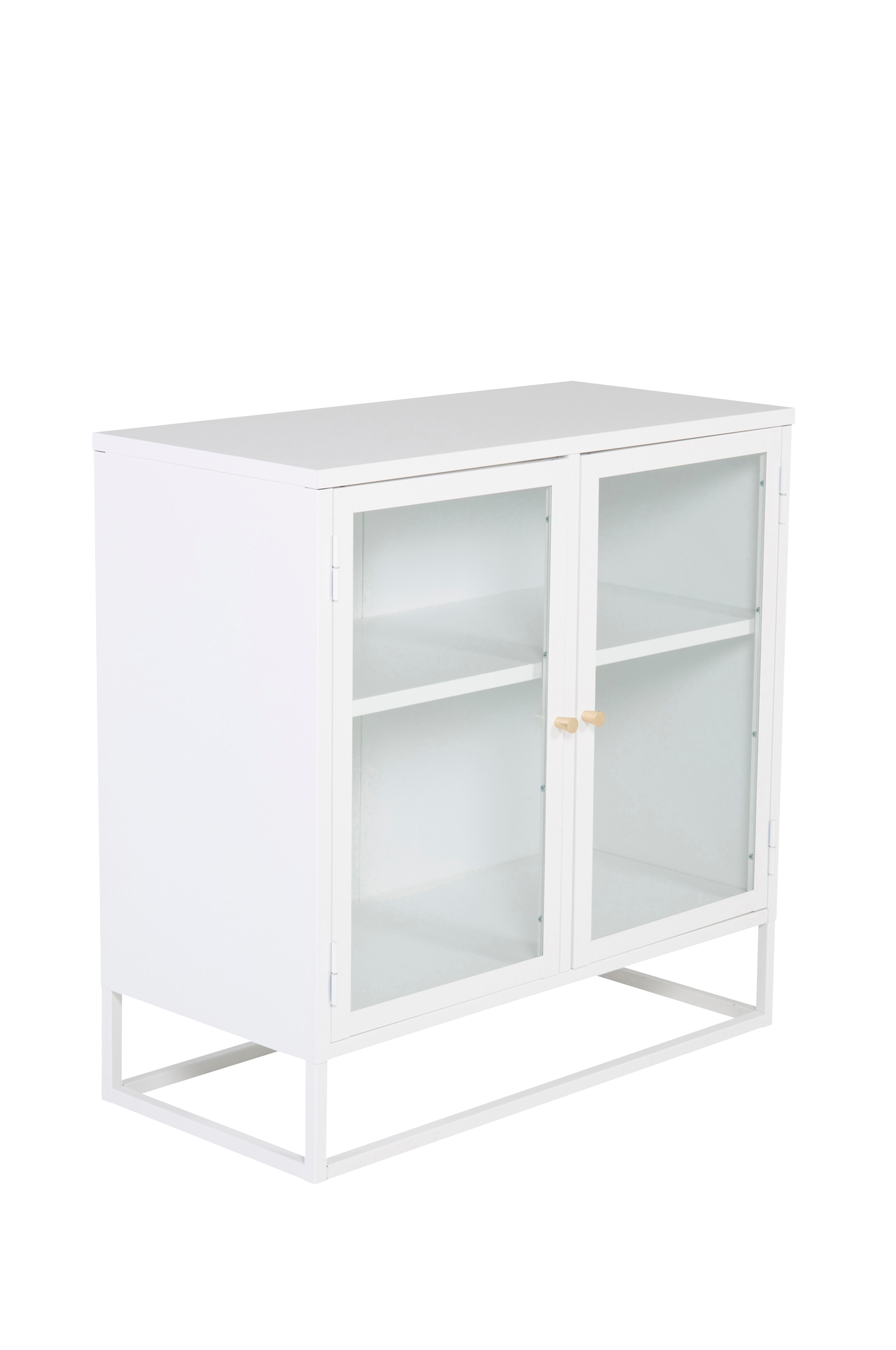 Bonnie-vitriinikaappi. Pieni ja kaunis teräskaappi, jossa säilytät tavarasi tyylikkäästi. Lasiovet, joissa teräskehys ja messinkinupit. Mitat: leveys 85, syvyys 40, korkeus 85 cm. Koottava.