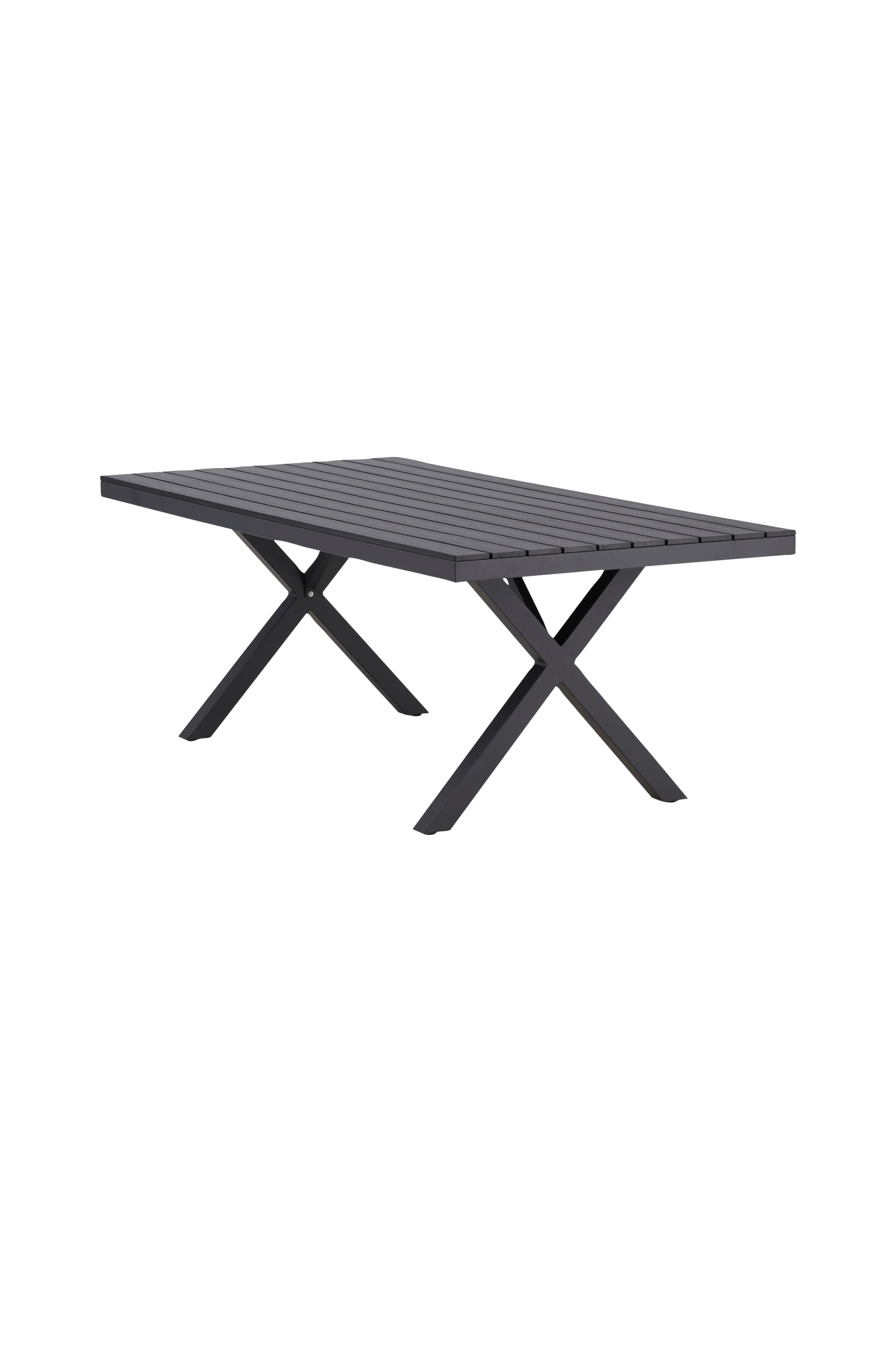 Ruokapöytä Garcia -sarjasta, jossa on klassinen muotoilu ja suorakulmainen pöytälevy koristeellisella aintwoodilla. Runko on valmistettu alumiinista, joka on kevyt ja tekee pöydästä helposti siirreltävän. Pöytä sopii erinomaisesti ulkokäyttöön, joten se sopii yhtä hyvin konservatorioon kuin puutarhaankin. Yhdistä saman sarjan ruokapöytätuoleihin täydellisen ilmeen aikaansaamiseksi ja luo terassillesi huomiota herättävän keskipisteen. Kokoa rakkaasi tänne loistaville aterioille tänä kesänä!
