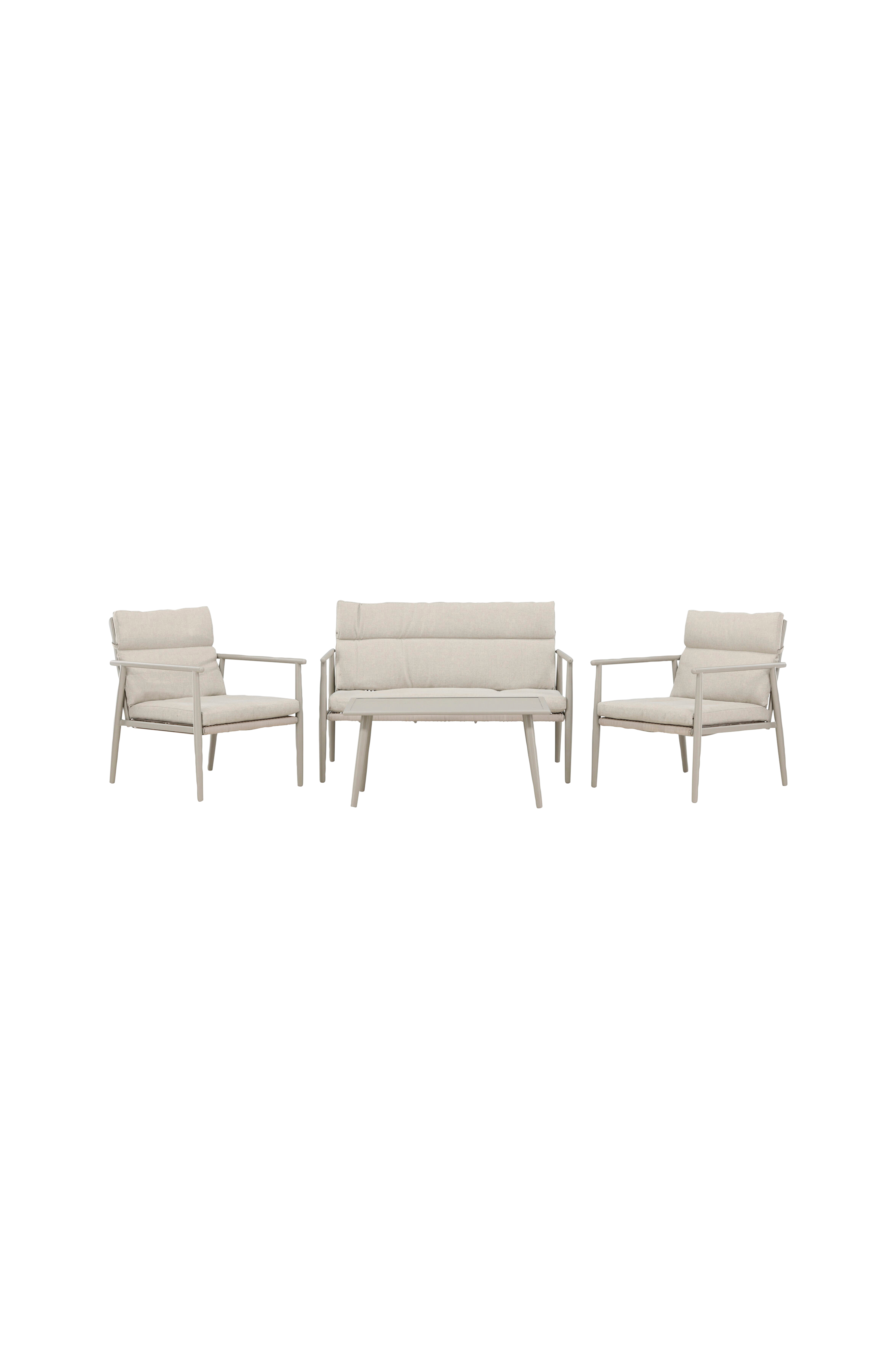 Mazzaro on täydellinen sohvasarja niille, jotka haluavat luoda terassille tyylikkään ja kutsuvan tunnelman. Tämä tyylikäs setti koostuu tilavasta sohvasta, kahdesta mukavasta nojatuolista ja kätevästä suorakulmaisesta pöydästä - kaikki mitä tarvitset seurusteluun ja rentoutumiseen ulkona. Tukeva teräsrunko ja pehmeät, hyvin muotoillut, yhteensopivaa polyesterikankaasta valmistetut tyynyt takaavat, että mazzaro tarjoaa sekä laatua että mukavuutta, joka kestää pitkään.