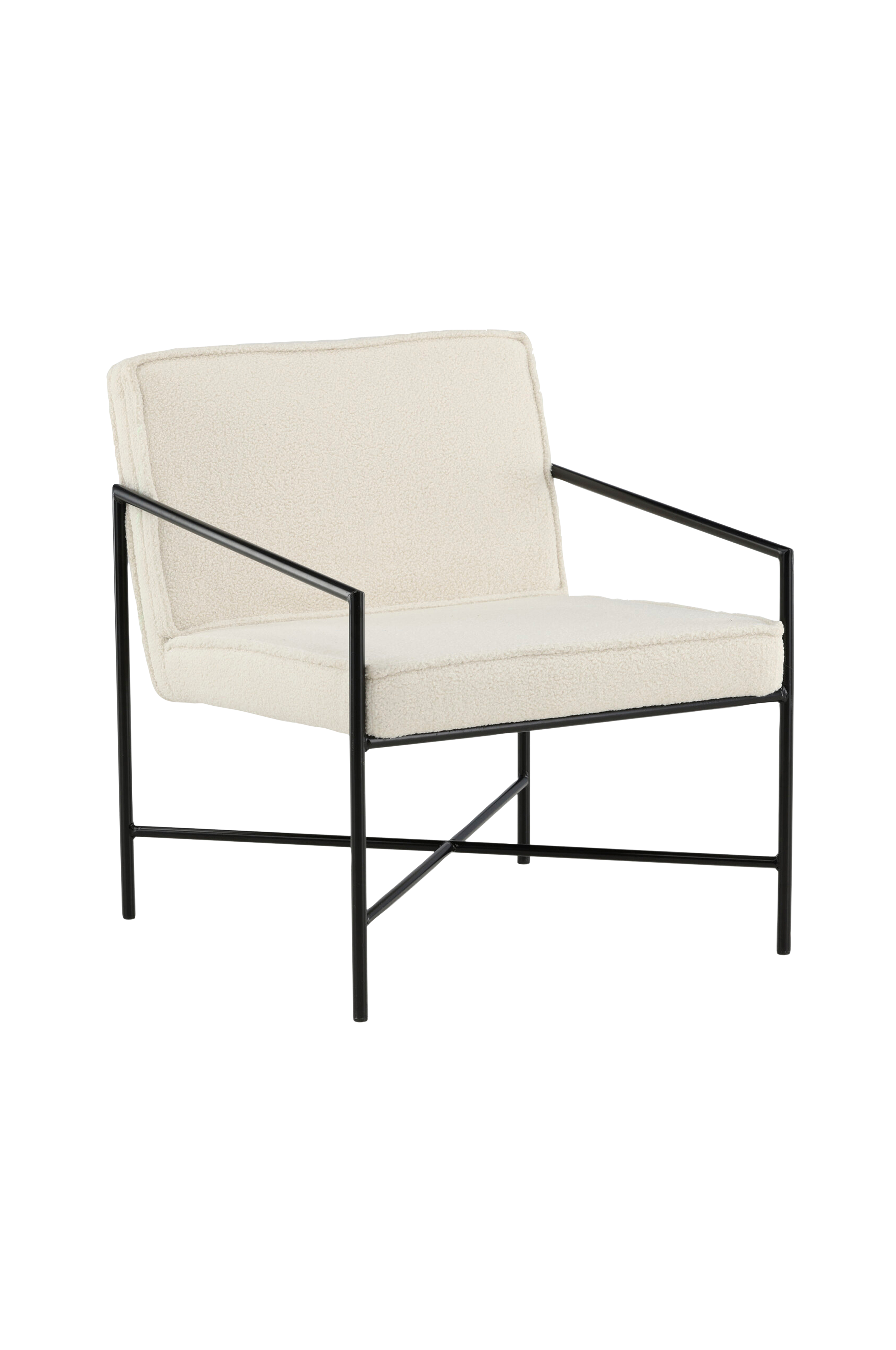 Rakel-nojatuolissa on teddypäällinen polyesteriä ja metallijalat. Nojatuolin mitat: Istuinkorkeus: 45 cm, istuinleveys: 63 cm, istuinsyvyys: 54 cm. Tuoli on helppo koota.