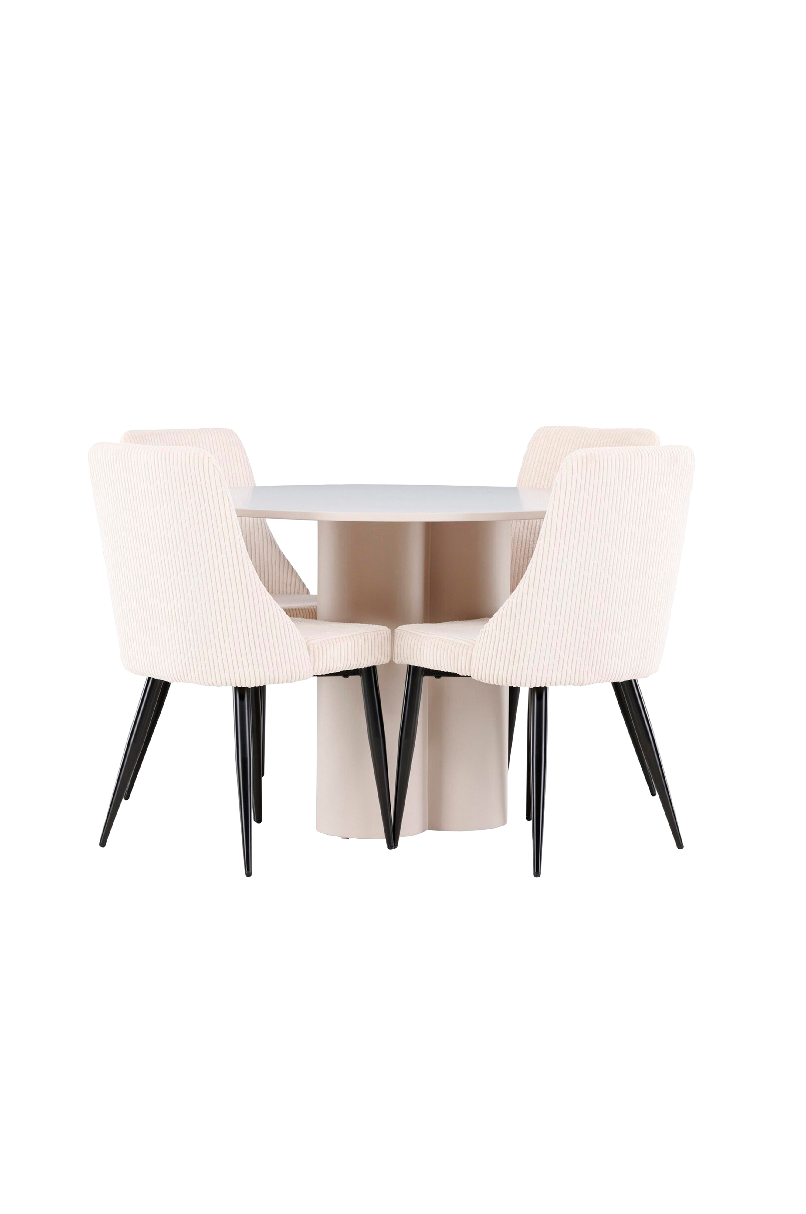 Luo tyylikäs ja kutsuva ruokailutila tyylikkäällä ruokailuryhmällä, jossa yhdistyvät Olivia-pöytä ja hienostuneet Leone-tuolit. Tämä ruokailuryhmä sopii täydellisesti sekä arki-illallisille että juhlallisiin tilaisuuksiin, ja se antaa ruokasalillesi modernin ja harmonisen tunnelman. Mdf-levystä valmistettu olivia-pöytä tuo ruokailuhuoneeseesi lämpimän ja kutsuvan tunnelman. Pöydän halkaisija on 110 cm, joten siinä on runsaasti tilaa ruoalle ja keskusteluille, ja sen pyöreä muoto luo tasapainoisen ja sosiaalisen ympäristön. Pöydän tukeva rakenne takaa pitkäaikaisen käytön ja vakauden. Neljä Leone-tuolia täydentävät pöytää täydellisesti, ja niiden tyylikkäät istuimet on päällystetty corduroylla. Nämä tuolit tarjoavat sekä mukavuutta että tyyliä, joten ne sopivat erinomaisesti pitkiin, nautinnollisiin illallisiin perheen ja ystävien kanssa. Niiden moderni muotoilu korkeilla selkänojilla ja pehmeillä istuimilla antaa ruokasalillesi hienostuneen ja nykyaikaisen ilmeen. Tämä ruokailuryhmä on täydellinen yhdistelmä estetiikkaa ja toiminnallisuutta, joten se on erinomainen valinta niille, jotka etsivät tyylikästä ja mukavaa ruokailutilaa. Päivitä ruokasalisi Olivia-pöydän ja Leone-tuolien yhdistelmällä ja luo paikka, jossa muistot ja ilo jaetaan.