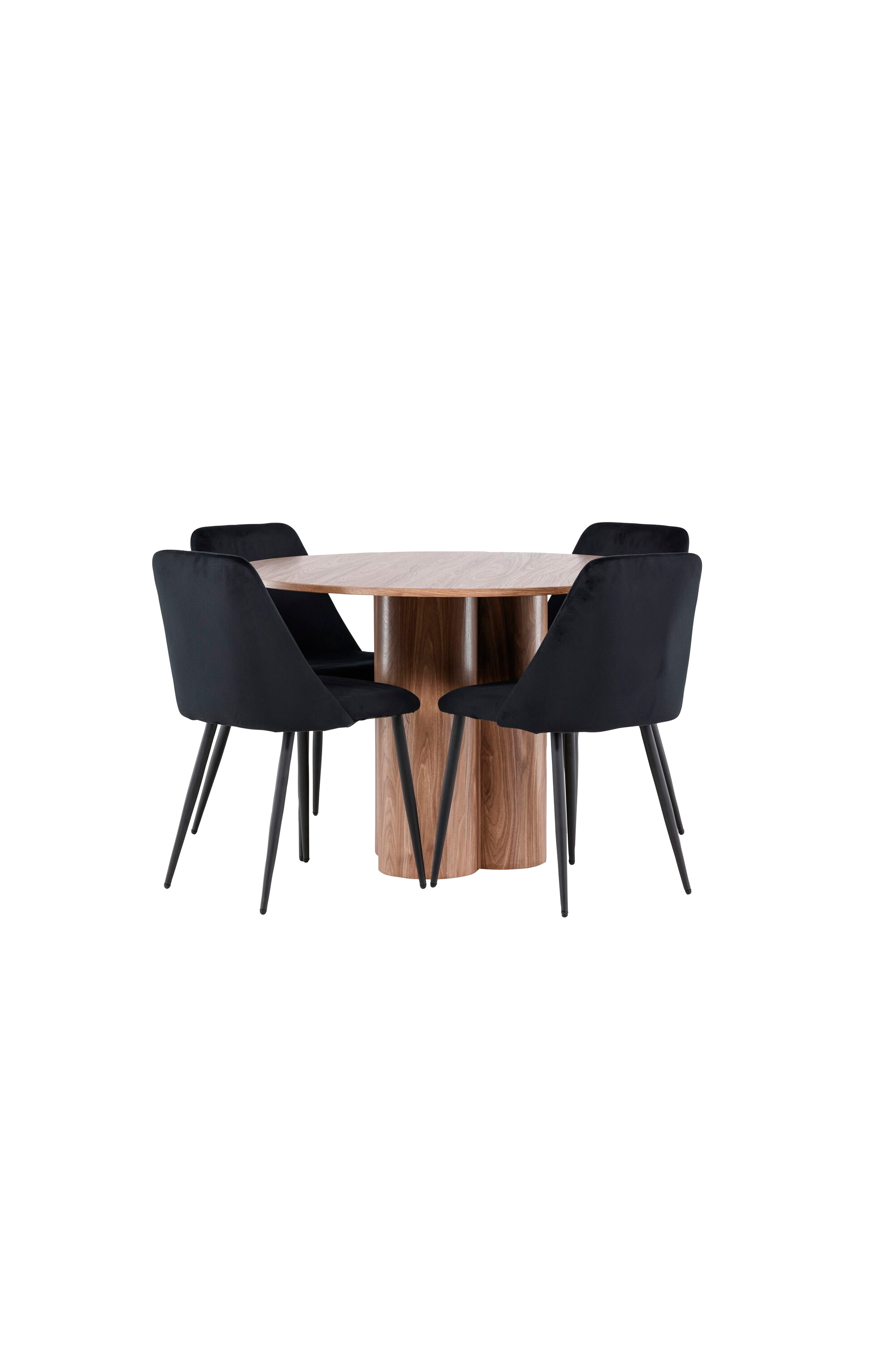 Uudista ruokailuhuoneesi hienostuneella ruokailusarjalla, joka sisältää Olivia-pöydän ja yötuolit. Tämä modernin muotoilun ja ylellisten materiaalien elegantti yhdistelmä luo täydellisen ympäristön sekä jokapäiväisille aterioille että juhlatilaisuuksiin. Olivia-pöytä on tyylikäs ja ajaton lisä kotiisi. Rakenteensa ansiosta pöytä antaa lämpimän ja kutsuvan vaikutelman. Pöytälevyn halkaisija on 110 cm, joten siinä on tarpeeksi tilaa istua mukavasti neljälle henkilölle, mutta se on silti tarpeeksi kompakti mahtuakseen pienempiin tiloihin. Olivia-pöytä seisoo vakaasti tukevalla jalustallaan ja on helppo puhdistaa, joten se on sekä käytännöllinen että tyylikäs. Yötuolit täydentävät olivia-pöytää ylellisellä muotoilullaan. Nämä tuolit on verhoiltu sametilla, mikä tarjoaa eksklusiivisen ja mukavan istumakokemuksen. Pehmeä sametti yhdistettynä pöytään luo ruokailuhuoneeseesi harmonisen ja tyylikkään tunnelman. Yötuoleissa on huomioitu sekä esteettisyys että mukavuus, joten ne sopivat erinomaisesti pitkiin, nautinnollisiin illallisiin. Olivia-ruokasarjalla ja yötuoleilla saat täydellisen ruokailutilan, jossa yhdistyvät toiminnallisuus ja tyylikäs muotoilu. Tästä ruokailusarjasta tulee epäilemättä kotisi keskeinen kohta, jonne perhe ja ystävät voivat kokoontua nauttimaan herkullisista aterioista ja miellyttävästä seurasta.