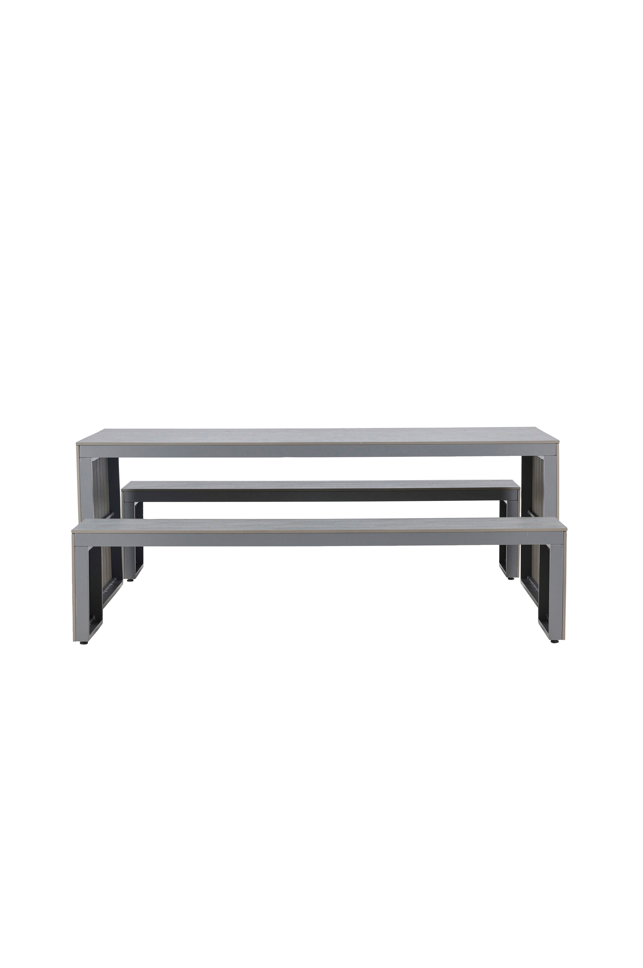 Tervetuloa San Juan -ruokailuryhmään, joka on yhdistelmä tyyliä ja toiminnallisuutta alumiinista. San Juan -ruokailuryhmä huokuu eleganssia yksinkertaisessa ja selkeässä muotoilussaan. Tämä käytännöllinen ruokailuryhmä koostuu kahdesta penkistä ja tilavasta ruokapöydästä, jonka mitat ovat runsaat 200x90 cm. Penkit on suunniteltu niin, että niihin mahtuu mukavasti useita vieraita, mikä luo kutsuvan ilmapiirin ateriointia varten. Pöydässä on runsaasti tilaa herkullisten ruokien tarjoiluun ja ikimuistoisten hetkien luomiseen rakkaidesi kanssa. San juan -ruokailuryhmä on täydellinen paikka nauttia aamiaisia, brunsseja, lounaita tai illallisia ulkona. Minimalistinen ja tyylikäs muotoilu sopii täydellisesti erilaisiin ulkoilma-asetelmiin, olipa kyseessä sitten terassi, parveke tai puutarha. Muotoilun yksinkertaisuus tekee siitä erinomaisen valinnan niille, jotka etsivät modernia ja ajatonta ilmettä. Luo muistoja ja nauti aterioista tyylillä San Juan -ruokailuryhmän avulla.