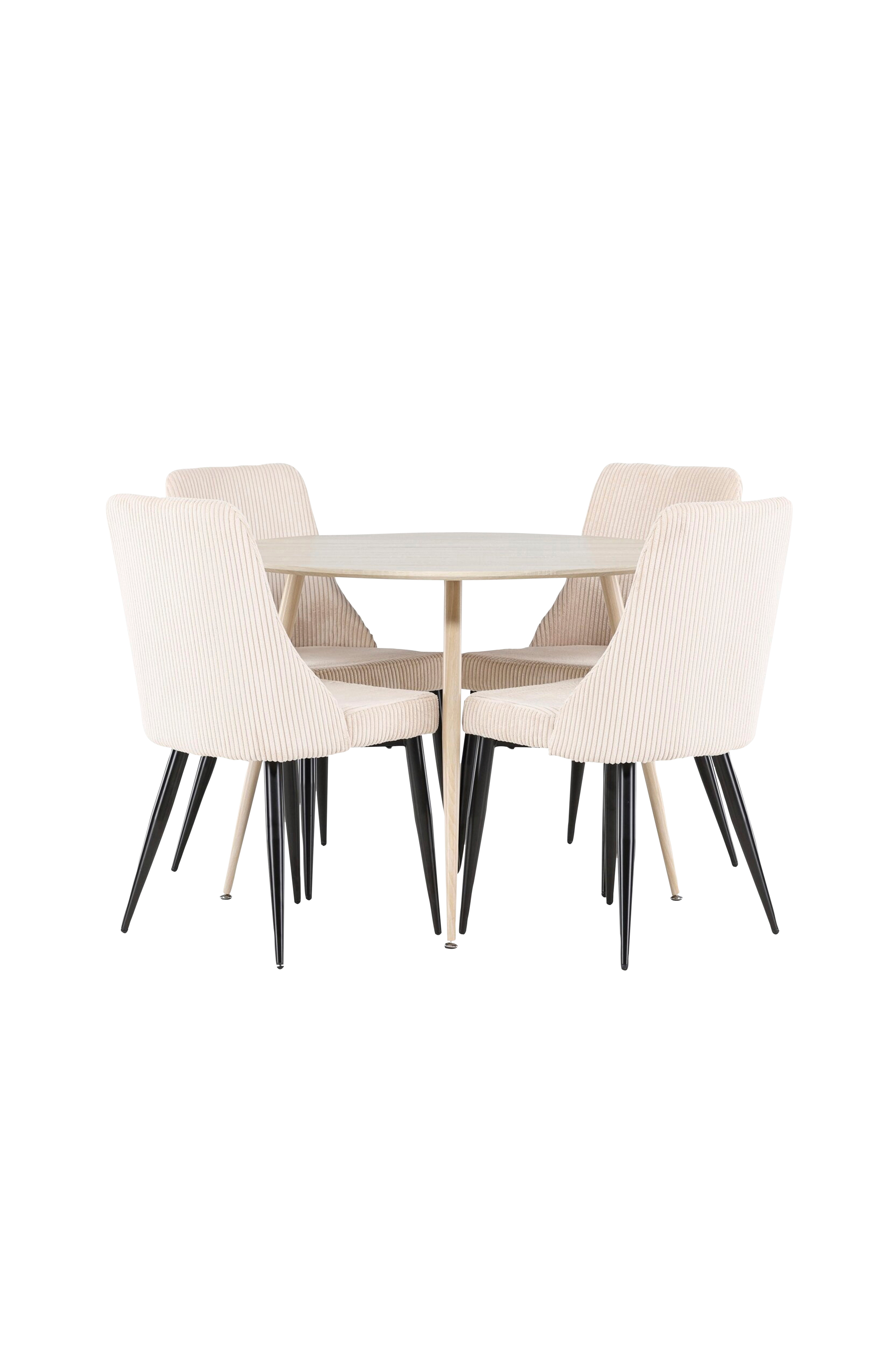 läpimitaltaan 100 cm:n Plaza-ruokapöytä, joka on valmistettu kestävästä mdf-materiaalista, täydentää Leonea täydellisesti. Sen valkopigmenttinen väri antaa huoneeseen lämpimän ja kutsuvan tunnelman, kun taas moderni muotoilu ja selkeät linjat luovat rauhallisuutta ja harmoniaa. Plaza sopii erinomaisesti pienempiin tiloihin, mutta tarjoaa silti riittävästi tilaa mukaville aterioille perheen ja ystävien kanssa. Yhdessä Leone-ruokailutuoli ja Plaza-ruokapöytä tarjoavat mukavan, tyylikkään ja toimivan ratkaisun ruokasalin sisustukseen, mikä tekee jokaisesta ateriasta nautinnollisen kokemuksen.