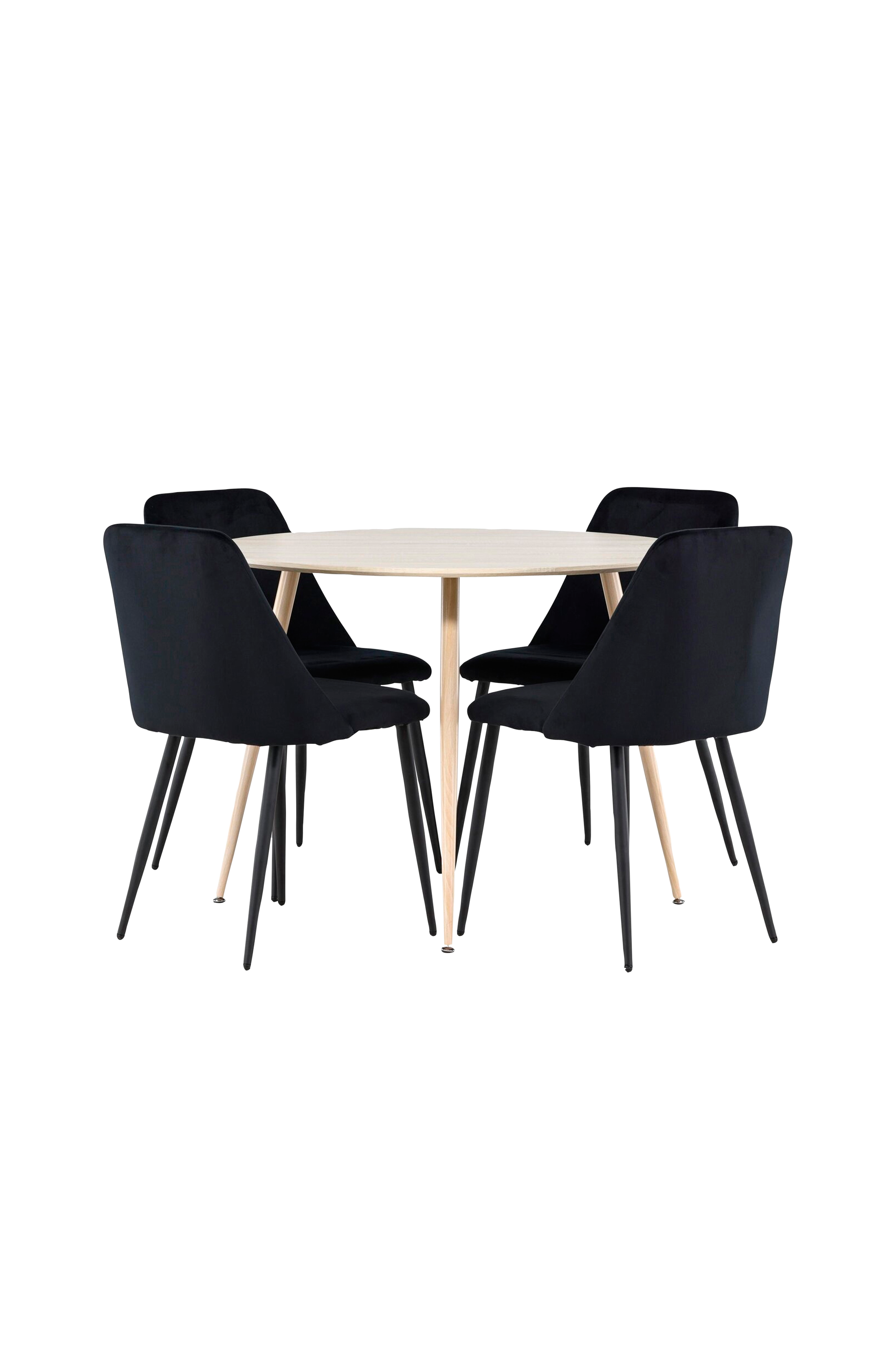 Löydä täydellinen ruokailusetti kotiisi Plaza-ruokapöydän ja Night-ruokailutuolien avulla. Plaza-ruokapöytä, jonka halkaisija on reilut 100 cm, on valmistettu kestävästä mdf-materiaalista, ja sen valkoisenpigmenttinen viimeistely antaa huoneeseen lämpimän ja kutsuvan tunnelman. Sen moderni muotoilu ja selkeät linjat luovat rauhallisen ja harmonisen ilmapiirin, joka tekee jokaisesta ateriasta rentouttavan kokemuksen. Kompakti muoto tekee Plazasta täydellisen pienempiin tiloihin ja tarjoaa samalla riittävästi tilaa mukaville aterioille perheen ja ystävien kanssa. Täydennä ruokapöytääsi Night-ruokailutuoleilla, jotka tarjoavat sekä mukavuutta että tyyliä. Tuolissa on täysin verhoiltu istuinosa samettikankaalla ja tuolin jalat ovat samanväriset, mikä luo huoneeseen ylellistä hohtoa. Yöruokailutuolit vaikuttavat osaltaan kutsuvaan ja muotitietoiseen ilmapiiriin, joka tekee herkullisen aterian nauttimisesta erityisen miellyttävää. Hienostunut muotoilu ja mukava materiaali tekevät Nightista täydellisen valinnan sekä jokapäiväisiin illallisiin että juhlallisiin tilaisuuksiin. Anna kotiisi ripaus modernia eleganssia Plaza-ruokapöydällä ja Night-ruokapöydän tuoleilla - ihanteellinen yhdistelmä kaikille, jotka arvostavat sisustuksessaan sekä tyyliä että toimivuutta.