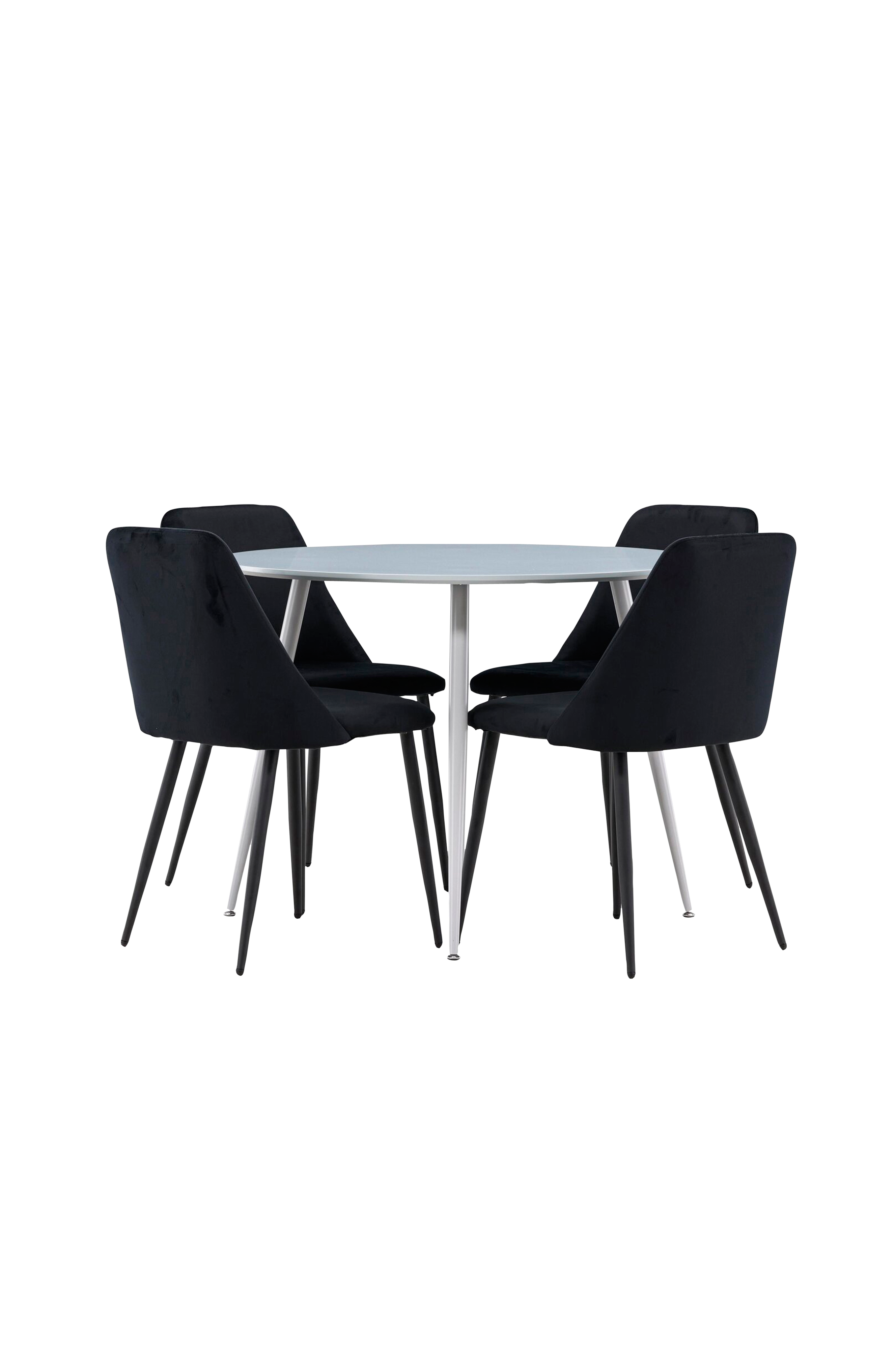 Anna ruokailuhuoneellesi ripaus modernia eleganssia ruokailusarjalla, joka koostuu Plaza-pöydästä ja yötuoleista. Tämä ruokailusetti tarjoaa täydellisen tasapainon tyylin ja mukavuuden välillä ja on ihanteellinen lisä kotiisi. Plaza-pöytä on hienostunut keskipiste mdf-rakenteensa ansiosta. Halkaisijaltaan 100 cm:n pöytä tarjoaa runsaasti tilaa aterioille ja sosiaalisille kokoontumisille, ja sen kompakti koko sopii täydellisesti sekä pieniin että suuriin huoneisiin. Varjostin tuo ruokailutilaan modernin ja tyylikkään lisän, ja kestävä pinta on helppo puhdistaa ja huoltaa, mikä takaa pitkäaikaisen kauneuden ja toimivuuden. Mukana olevat neljä yötuolia täydentävät pöytää täydellisesti tyylikkäällä muotoilullaan ja korkealla mukavuudellaan. Tuolit on verhoiltu sametilla, joka tarjoaa pehmeän ja kutsuvan istumakokemuksen. Samettikangas on tunnettu tyylikkyydestään ja mukavuudestaan, joten sinä ja vieraasi voitte istua mukavasti pitkien aterioiden ja miellyttävien keskustelujen ajan. Tuolit luovat tyylikkään kontrastin pöytään nähden ja antavat ruokasalillesi modernin ja hienostuneen tunnelman. Plaza-ruokasetti yötuoleilla on täydellinen valinta niille, jotka haluavat luoda tyylikkään ja toimivan ruokailuympäristön. Modernin muotoilun ja korkean mukavuuden yhdistelmä tekee jokaisesta ateriasta nautinnollisen kokemuksen. Tervetuloa uudelle tasolle tyyliin ja mukavuuteen kotiisi Plazan ja Nightin kanssa!