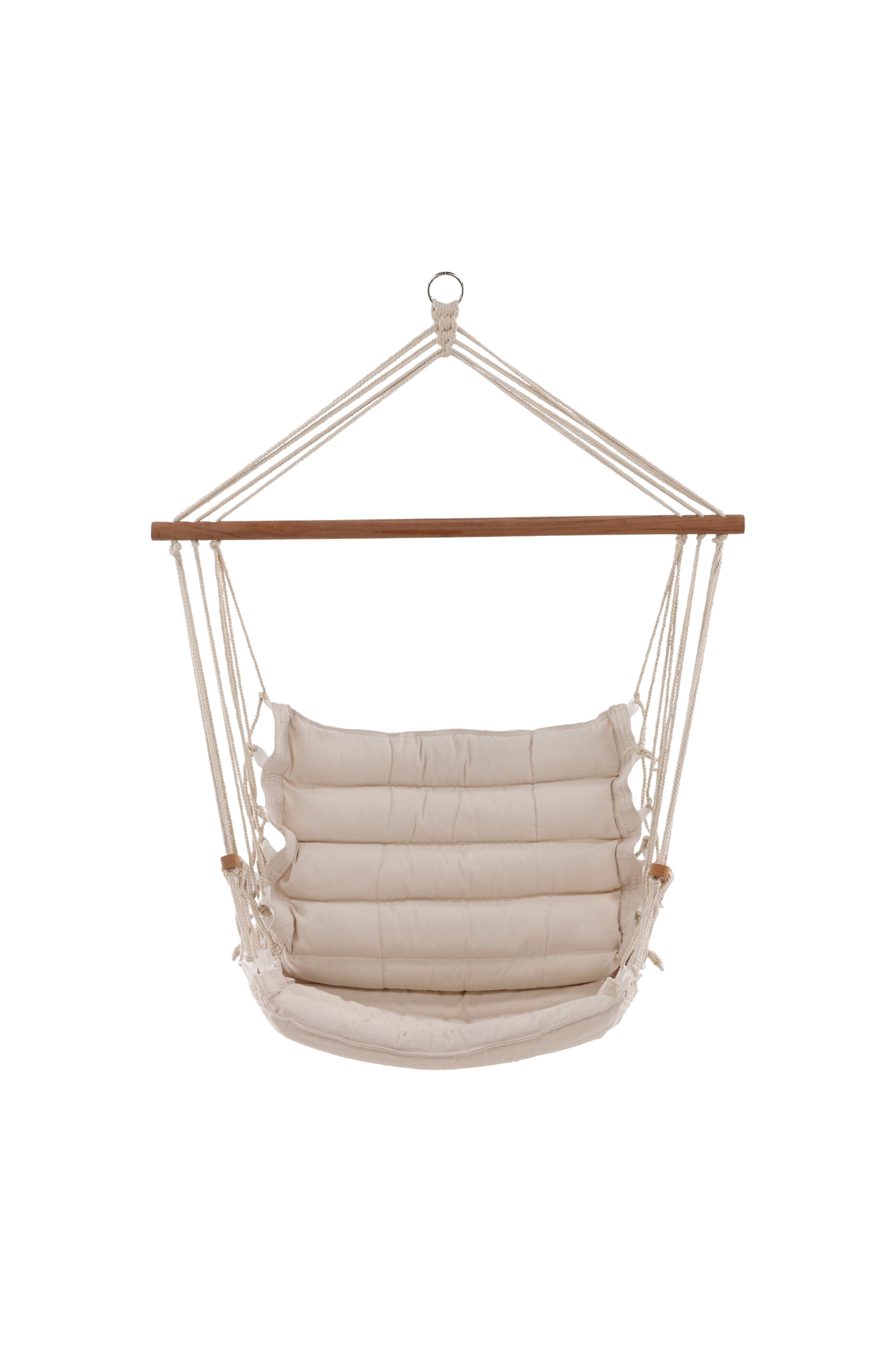 Luo puutarhaan viihtyisä paikka Tapaz-sarjan riipputuolilla! Tässä riipputuolissa on kaikki: moderni muotoilu, kutsuva design ja kestävä materiaali. Istuin valkoista polyesteri- ja puuvillakangasta. Koristeelliset puuyksityiskohdat pitävät köydet yhdessä. Rentoudu ja nauti harmonisesta ja mukavasta omasta ajasta! Mitat: korkeus: 130 cm, leveys: 70 cm, syvyys: 50 cm