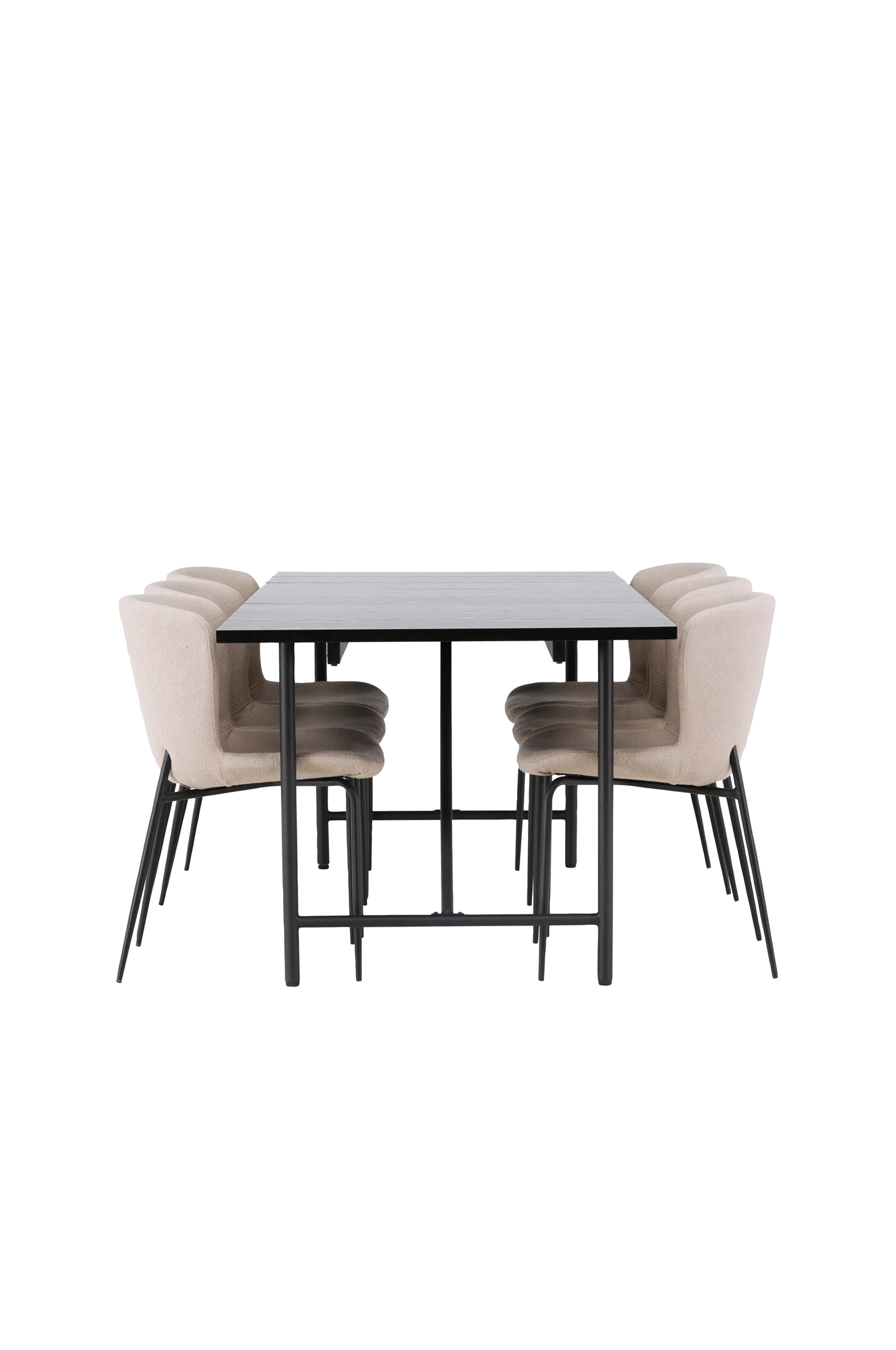 Kaunis Astrid-ruokapöytä nostaa todellakin sisustuksesi seuraavalle tasolle. Astrid-pöydässä on suorakulmainen, ohut viilutettu MDF-levy, joka luo hienostuneen tunnelman huoneeseesi. Alusta on kapea ja luo nopeasti ilmavan tunnelman ja antaa tilantuntua. Pöytä on lisäksi reilun kokoinen ja sen ympärillä on tilaa perheelle ja ystäville. Tässä ruokapöytään on yhdistetty Modesto-sarjan ruokapöydän tuolit, joiden avulla saat kotiisi täydellistä harmoniaa. Tuolien skandinaavinen design tuo kodin sydämeen kutsuvan tunnelman. Pehmeä bukleepäällinen luo lämpimän ja kutsuvan tunnelman, ja tyylikkäät, kapeat mustat metallijalat tekevät ilmeestä modernin.
