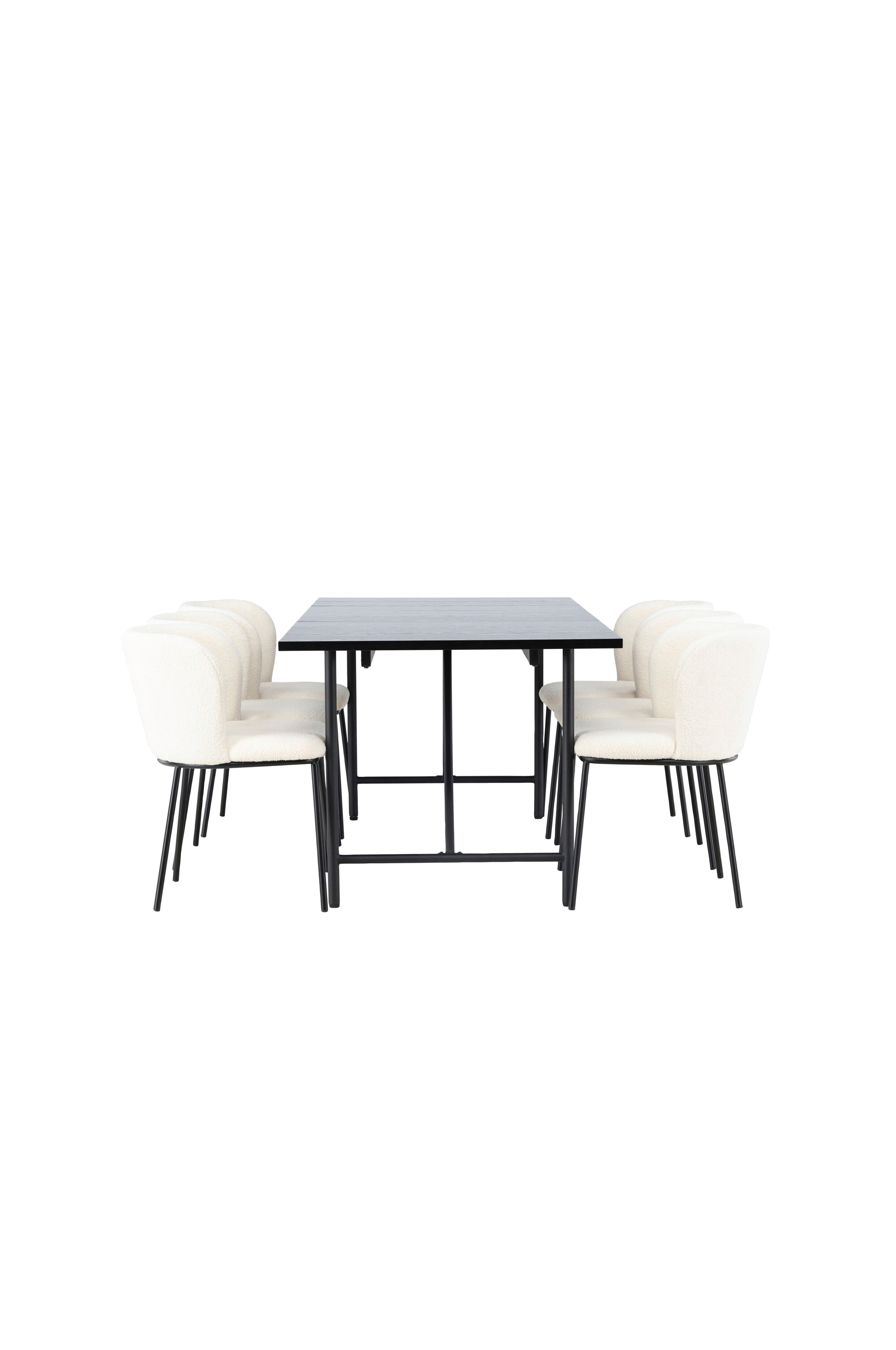 Suorakulmainen Astrid-ruokapöytä on täydellinen valinta kotiisi. Ohut, mattapintainen pöytälevy on viilutettua MDF-levyä, ja moderni tunnelma yhdistyy siinä eleganssiin. Jalustan kapea design luo ilmavan tunteen ja antaa huoneeseen tilantuntua. Jokaisesta ateriasta tulee nautinto, kun kokoonnutte upean pöydän ympärille. Tähän ruokapöytään on yhdistetty Edina-sarjan ruokapöydän tuolit. Edina on unelmatuoli kaikille trenditietoisille. Istuinosa on verhoiltu kokonaan pehmeällä ja elegantilla valkoisella bukleekankaalla, ja minimalistiset mustat tuolinjalat ovat metallia, minkä ansiosta istuminen on nautintoa sekä katseelle että keholle.