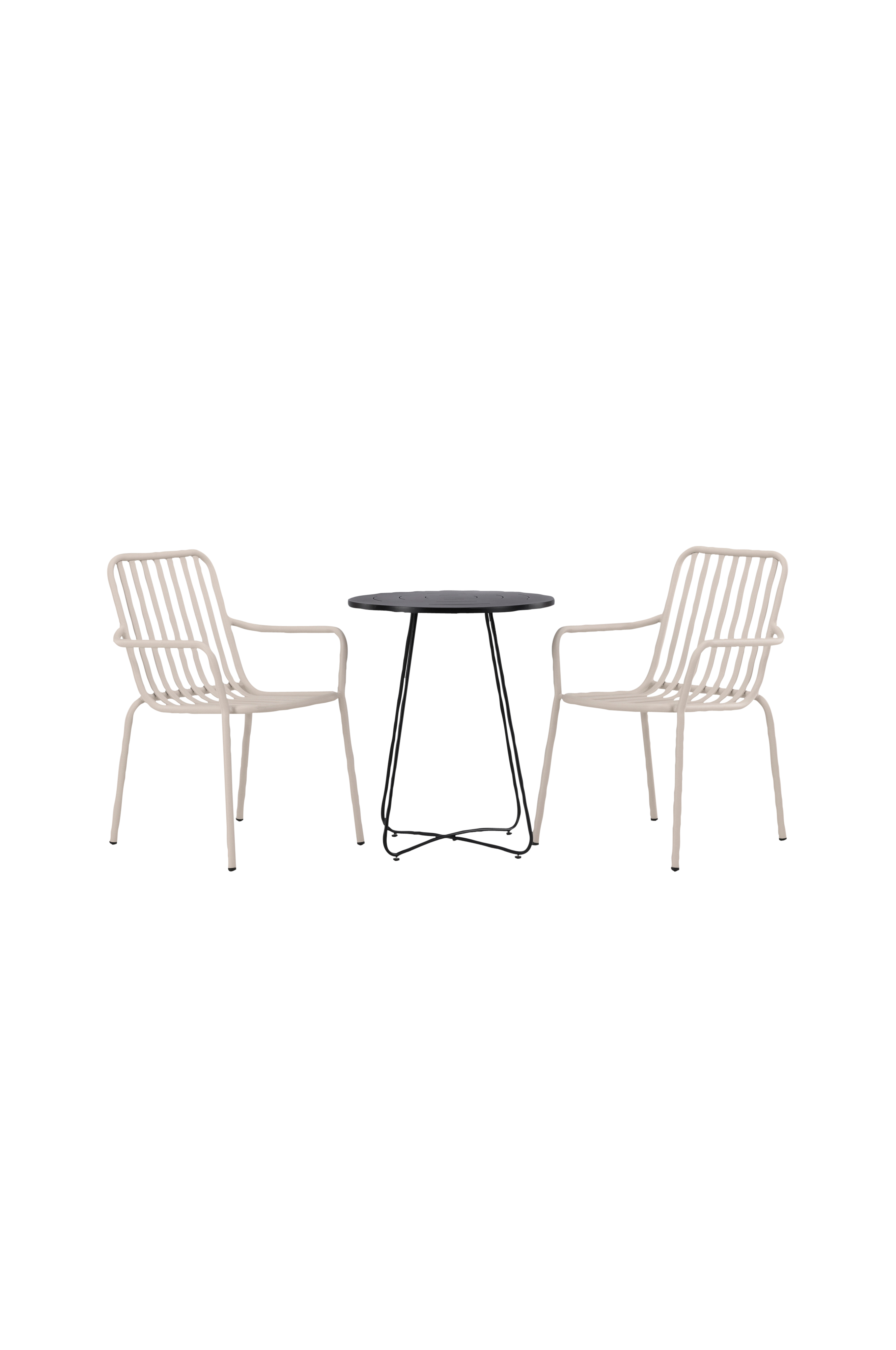 Minimalistinen ja kutsuva ruokailuryhmä! Bacong-sarjan sirossa kahvilapöydässä on pyöreä pöytälevy ja kapeat teräsjalat. Tässä ryhmässä pöytään on yhdistetty 2 Peking-sarjan ruokapöydän tuolia. Alumiinirimat ja upeat värit tekevät tuolista modernin ja ajattoman. Tämä on täydellinen kahvilaryhmä pienelle parvekkeelle tai pieneen ulkotilaan. Kata kahvit kesällä ulos ja nauti viihtyisistä hetkistä!