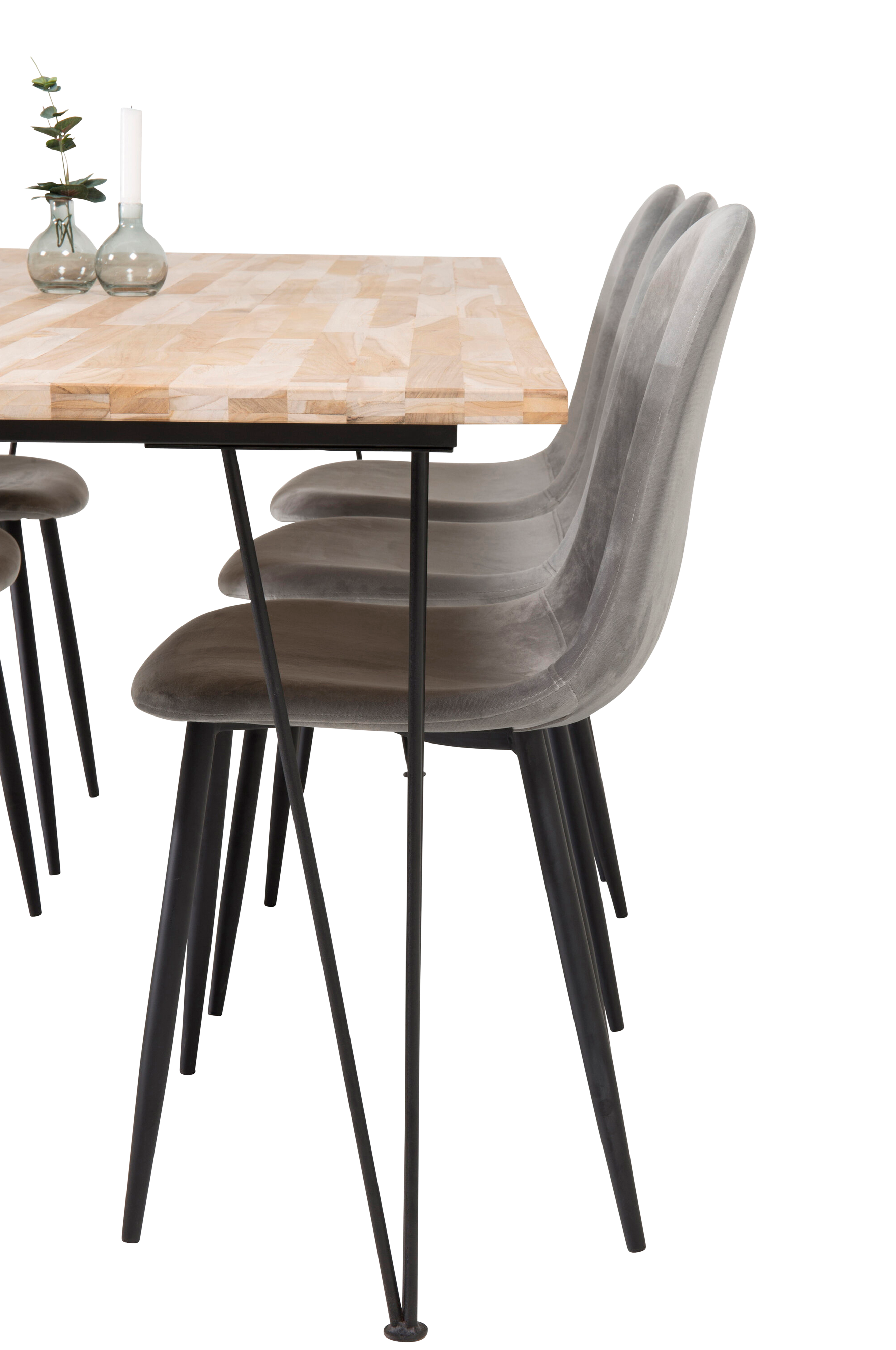 Moderni ja tyylikäs Bali-ruokapöytä ja Polar-sarjan näyttävät samettiverhoillut ruokapöydän tuolit. Valitse tyylikäs kokonaisuus, jossa on tilaa ruokailuun ja seurusteluun!