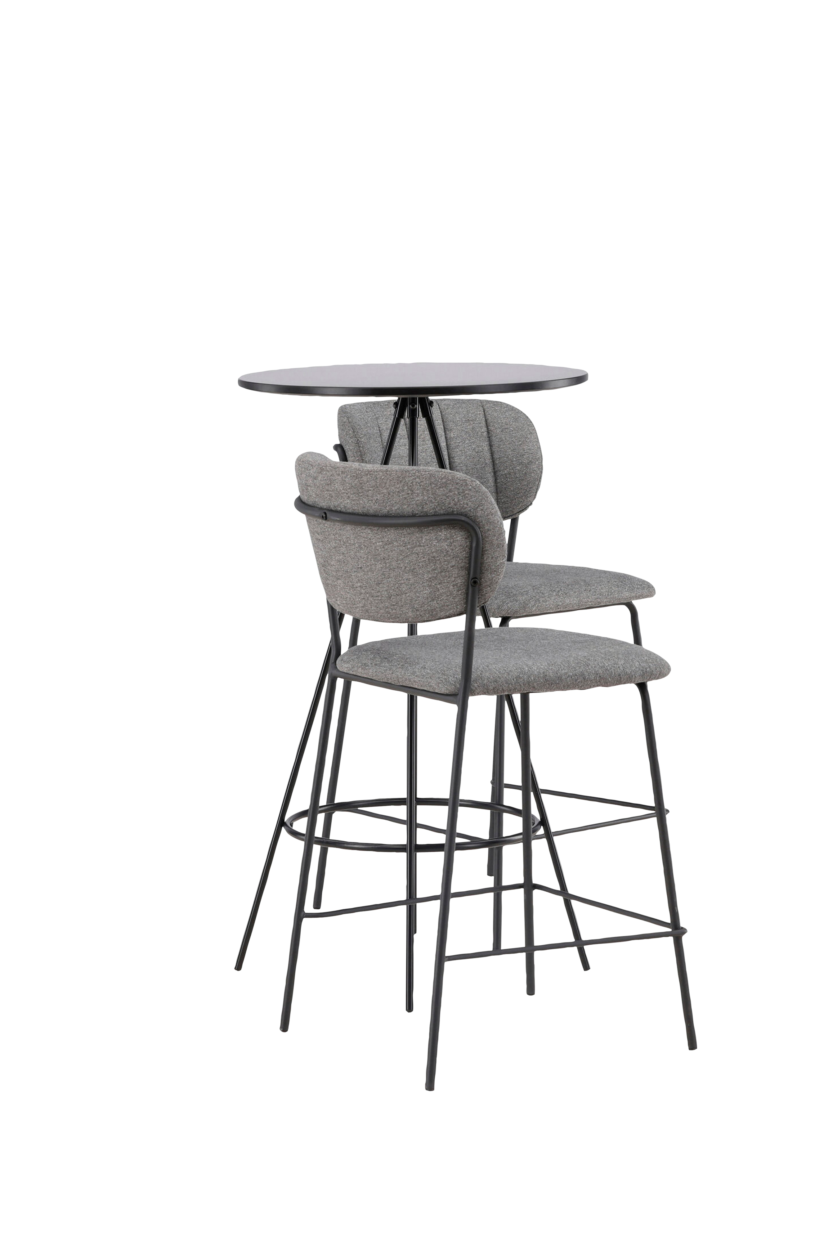 Viehättävä ja miellyttävän värinen baariryhmä! Bistro-baaripöydässä on minimalistinen skandinaavinen muotoilu ja pyöreä pöytälevy viilutettua MDF-levyä. Ilmavat kartiomaiset metallijalat levenevät kevyesti ulospäin, ja niissä on integroitu jalkatuki. Tässä pöytään on yhdistetty Bell-sarjan baarituolit. Tuoleissa on kevyesti pyöristetty selkänoja, ja istuinosa on verhoiltu polyesterikankaalla ja siinä on tyylikkäät koristesaumat. Kapeat teräsjalat ja integroitu jalkatuki. Kapealinjainen malli luo ilmavan vaikutelman!