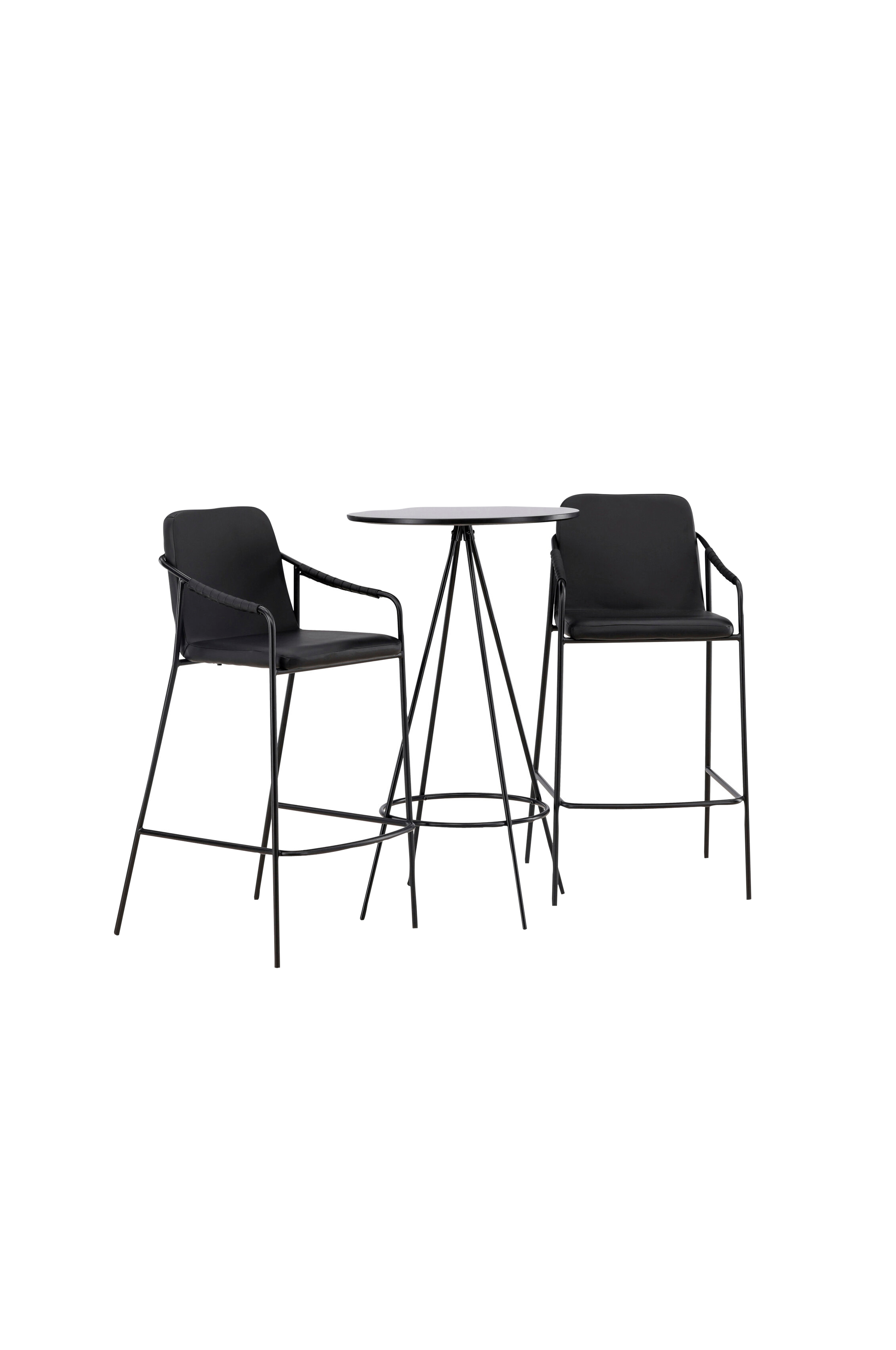 Tätä parempaa yhdistelmää ei ole! Bistro-baaripöydässä on minimalistinen skandinaavinen muotoilu ja pyöreä pöytälevy viilutettua MDF-levyä. Ilmavat kartiomaiset metallijalat levenevät kevyesti ulospäin, ja niissä on integroitu jalkatuki. Tässä pöytään on yhdistetty Tvist-sarjan baarituolit. Tuoleissa on pehmustettu, kauttaaltaan polyuretaanilla verhoiltu istuinosa, minimalistiset jalat ja integroidut teräksiset käsinojat. Tuolin tulee olla sekä kutsuva että mukava!