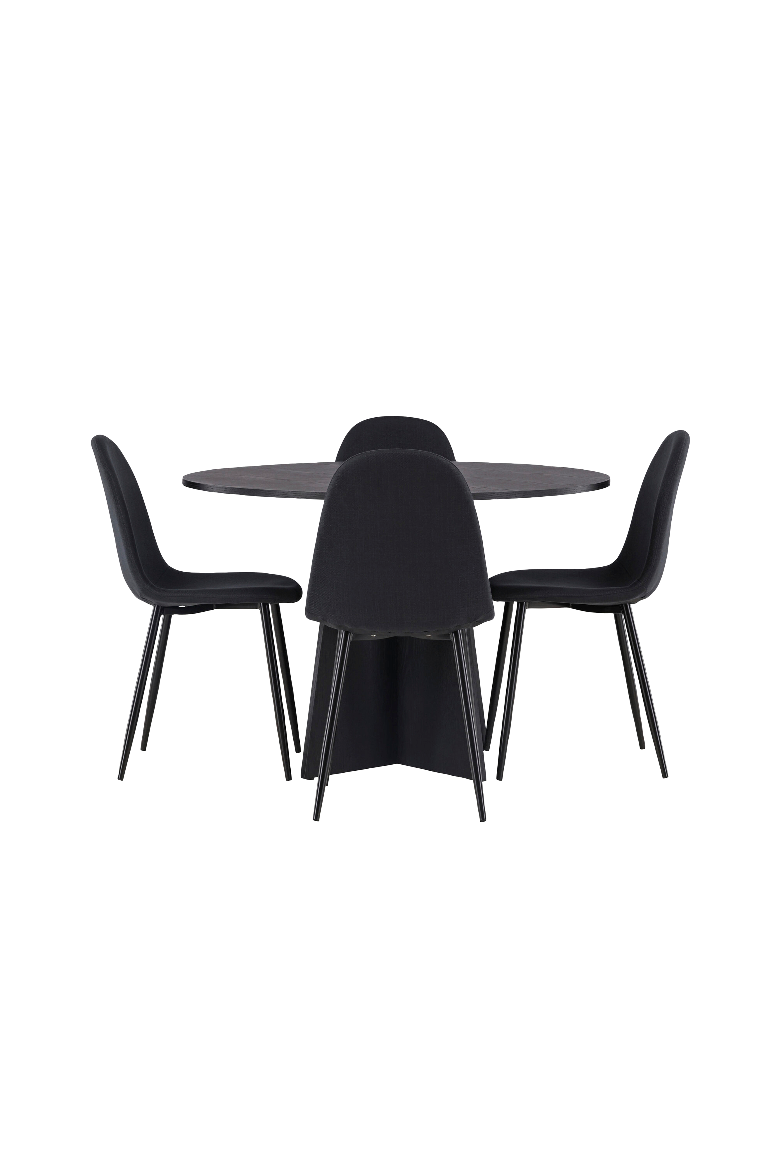 Tästä ei ruokailuryhmä parane! Pyöreä yksivärinen Bootcut-ruokapöytä, jossa pöytälevy MDF-levyä ja vaneria. Upeasti muotoiltu runko antaa kokonaisuudelle näyttävän ilmeen. Tässä kokonaisuudessa pöytään on yhdistetty Polar-sarjan ruokapöydän tuolit. Pyöreälinjaisissa tuoleissa on klassinen muotoilu - tuolit ovat sekä kätevät että ajattomat. Selkänoja ja istuinosa on verhoiltu pehmustetulla polyesterikankaalla. Jalat jauhemaalattua metallia. Kalusta koti viehättävästi ja mukavasti! Pöydän mitat: 110 cm.