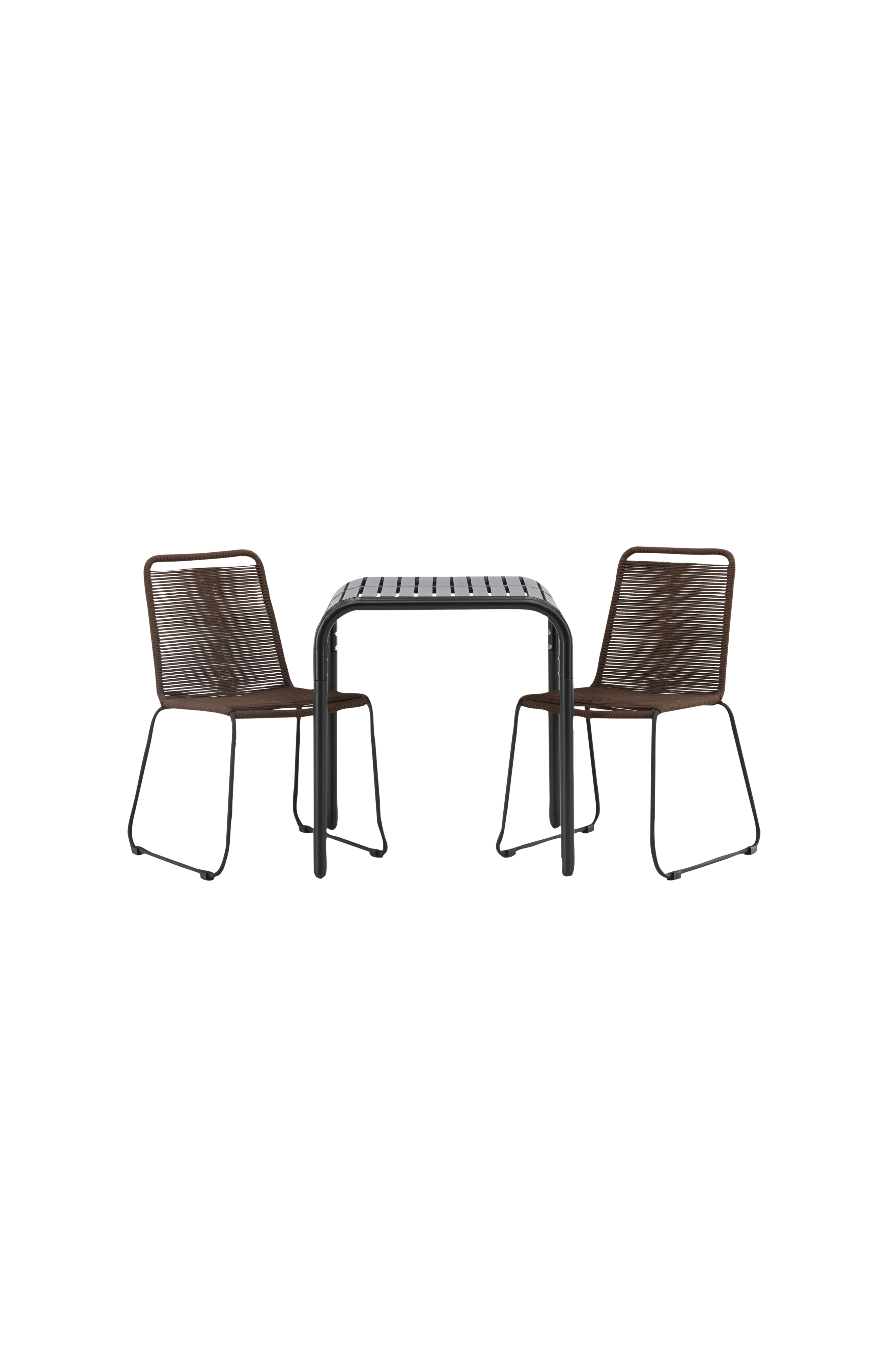 Moderni, kutsuva ja minimalistinen - mitä vielä voi toivoa? Borneo-sarjan pöydässä on taipuisat muodot ja ajaton skandinaavinen design. Pöytälevy koostuu rimoista, jotka taipuvat päädyissä jalkoja kohti. Pöytä on alumiinia, mikä tekee siitä kulutusta kestävän ja helpon siirtää paikasta toiseen. Tässä ryhmässä pöytään on yhdisetty 2 Lindos-sarjan tyylikästä ruokapöydän tuolia. Tuoleissa on kulutusta kestävä värillinen naruistuinosa, ja ne sopivat erinomaisesti ulkokäyttöön. Täydellinen kahvilaryhmä pienelle parvekkeelle tai pieneen ulkotilaan!