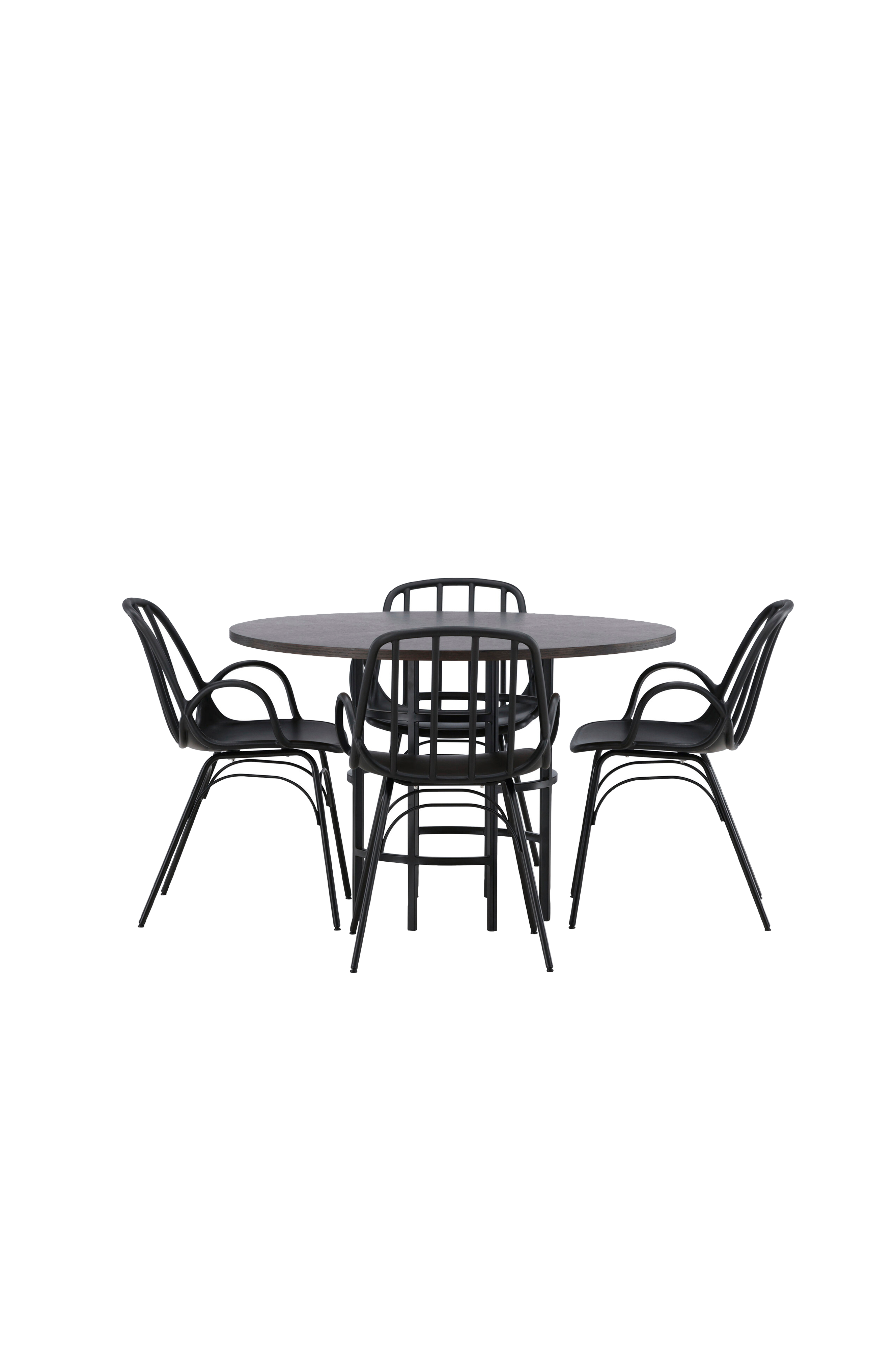 Täydellinen ruokailuryhmä, joka on sekä mukava, moderni että ajaton! Copenhagen on vaikuttava ruokapöytä. Hienostunut pöytälevy on MDF-levyä ja koristeellinen, ilmava ja sylinterinmuotoinen jalusta metallia. Tässä kokonaisuudessa on Dyrön-sarjan modernit ruokapöydän tuolit. Tyylikkäät ja käytännölliset tuolit ovat muovia ja terästä. Käsinojat sulautuvat saumattomasti istuinosaan, ja loivasti pyöristetty selkänoja koostuu pystyrimoista. Pyöreä ruokapöytä on täydellinen, jos haluat luoda kotiisi viihtyisän ja kutsuvan tunnelman!