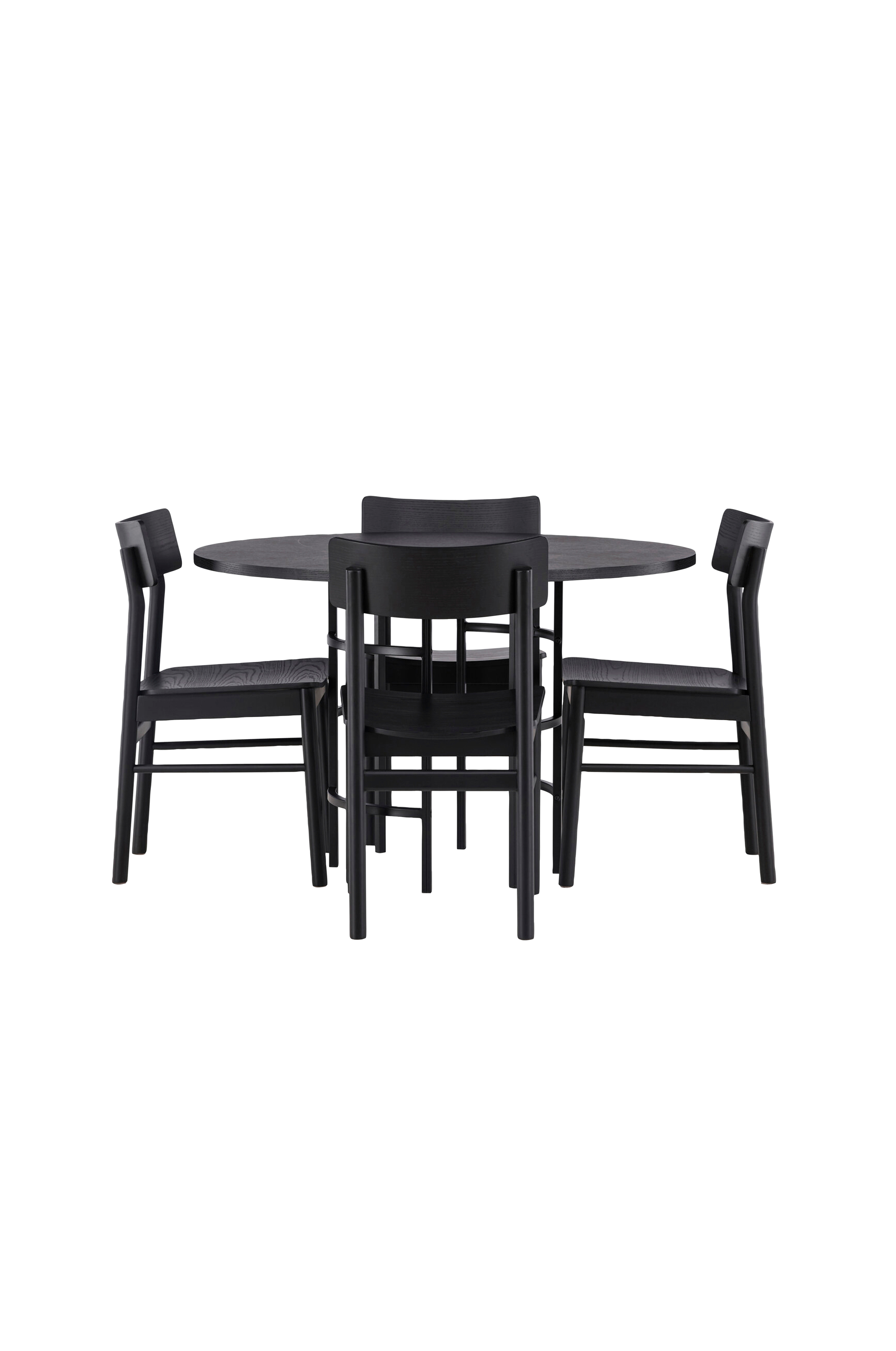 copenhagen -pöydässä on reilu 115 senttimetrin halkaisija, ja se on valmistettu mdf-materiaalista ja tukevista teräsjaloista, jotka takaavat vakauden. Sen tyylikäs musta väri tuo ruokasaliin modernin säväyksen ja sopii saumattomasti useimpiin sisustustyyleihin.