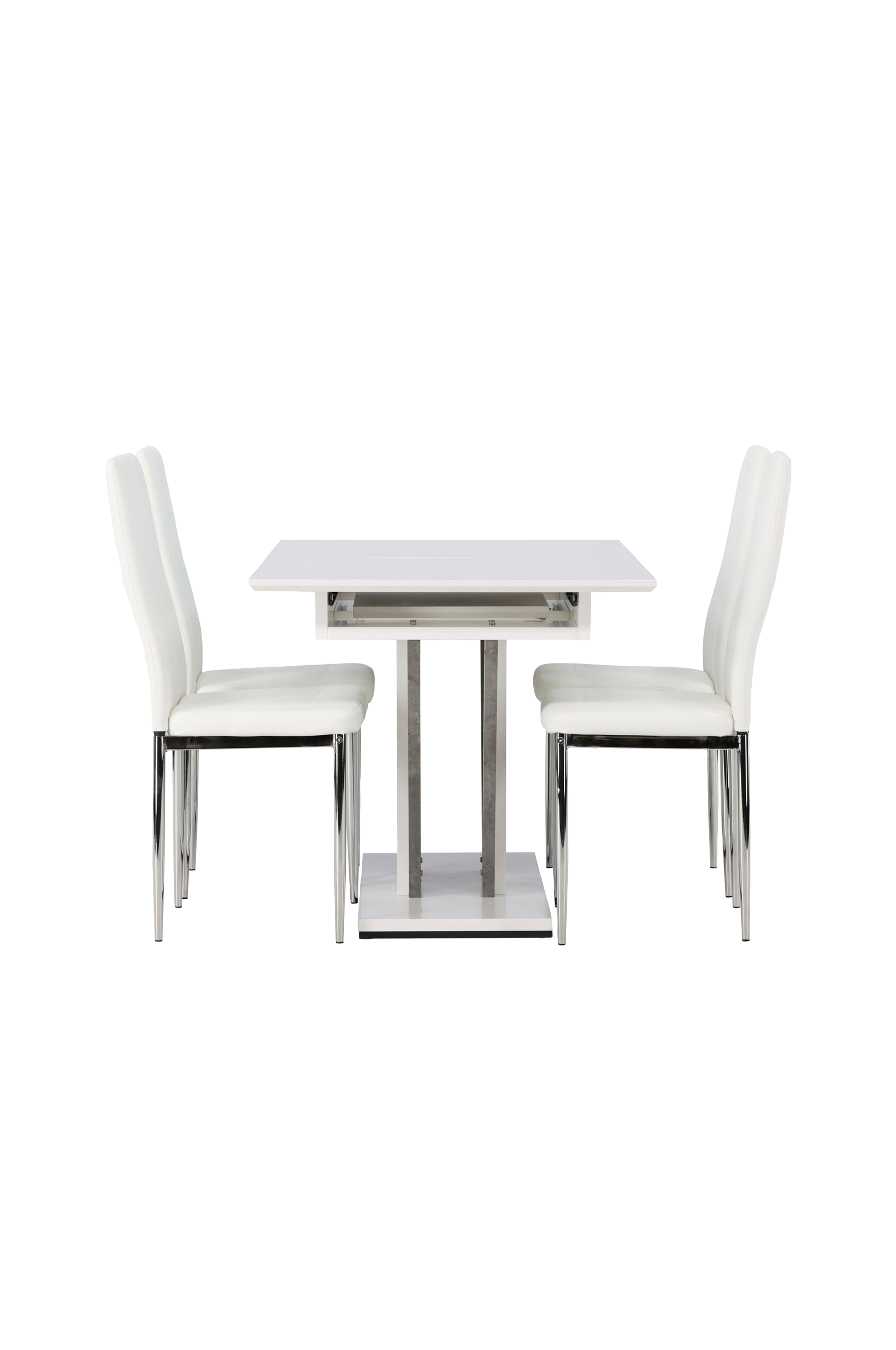 Disa-ruokapöydässä on suorakaiteenmuotoinen pöytälevy MDF-levyä ja keskellä samasta materiaalista valmistettu jalusta sekä kaksi MDF-kehikkoa. Yksi ruokapöydän upeista eduista on sen jatkettava ominaisuus, joten se sopii hyvin sekä pienille että isoille seurueille. Ruokailuryhmää täydentävät Pastill-sarjan näyttävät ruokapöydän tuolit. Tuolin korkea selkänoja ja istuin on verhoiltu tekonahalla, joka on pehmustettu mukavuuden lisäämiseksi. Suorat pohjoismaista tyyliä edustavat jalat ovat metallia ja ne luovat tyylikkään yksityiskohdan kokonaisuuteen-