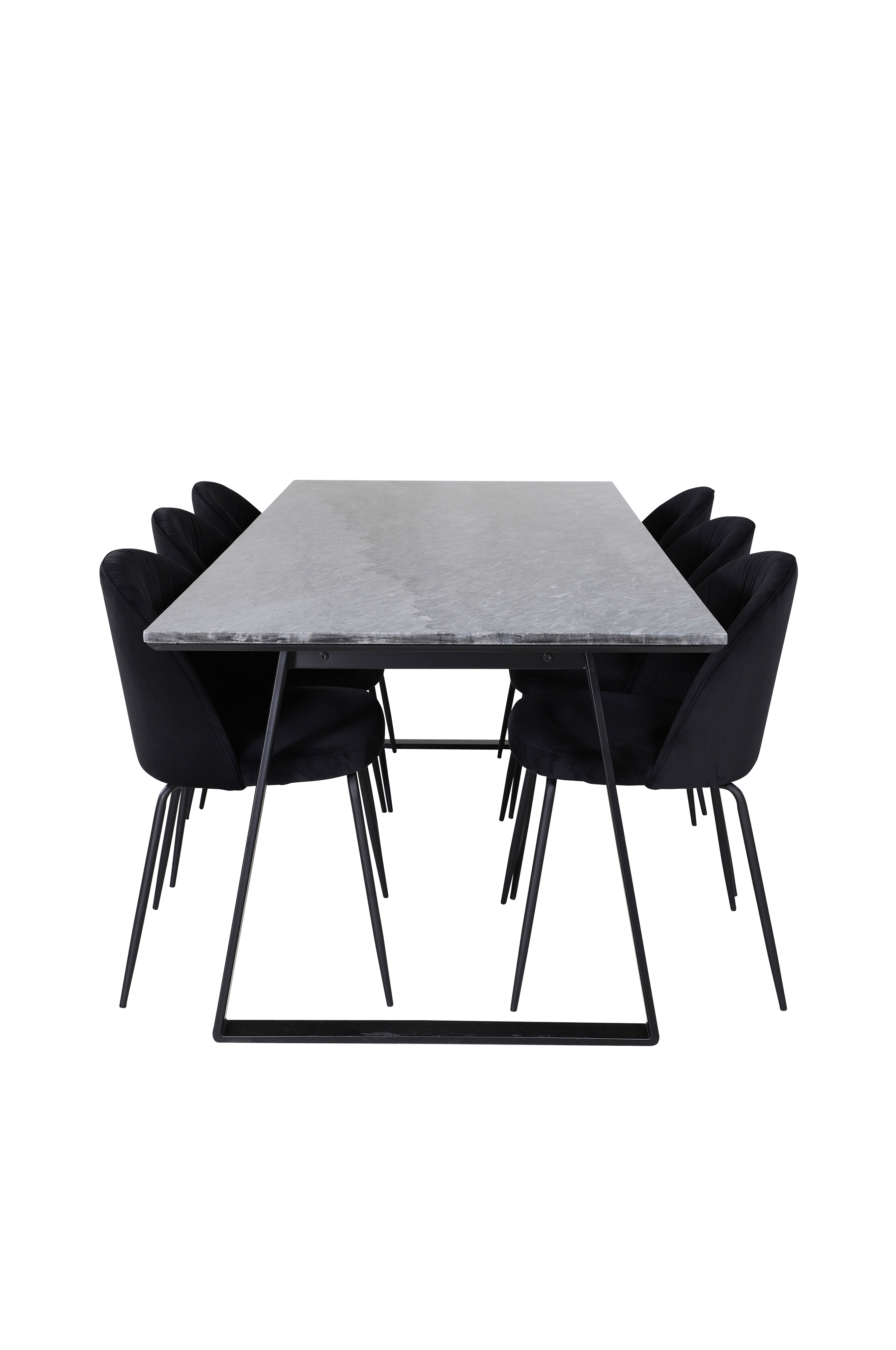 Estelle-pöydässä on tyylikäs marmorinen pöytälevy ja upea jalusta. Pöytään on yhdistetty elegantit Wrinkles-tuolit. Valitse näyttävä ruokailuryhmä, joka toivottaa sinut tervetulleeksi kotiin!