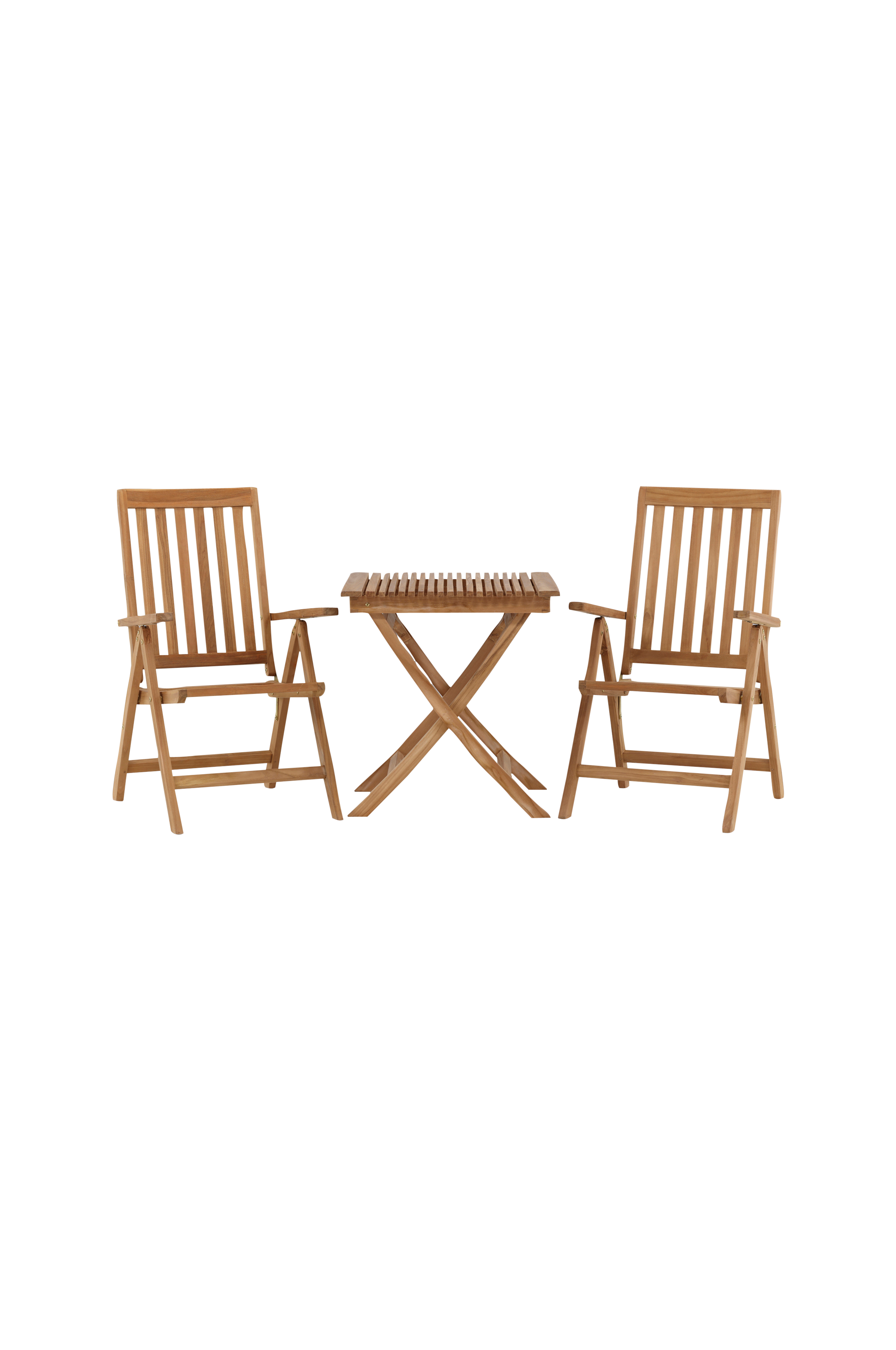 Ajaton ja muodikas - ruokailuryhmä, joka tekee vaikutuksen! Ghana-ruokapöydässä on sievä design kaunista tiikkiä ja se on kokoontaitettava, joten sen siirtäminen ja säilyttäminen on helppoa. Mukana Kenya-sarjan hienosti yhteensopivat ruokapöydän tuolit, myös tyylikästä tiikkiä. Tuolit voi taittaa optimaaliseen asentoon rentoutumista varten, ja niissä on miellyttävät käsinojat. Täydellinen kahvilaryhmä kesän aurinkoisiin kahvihetkiin!