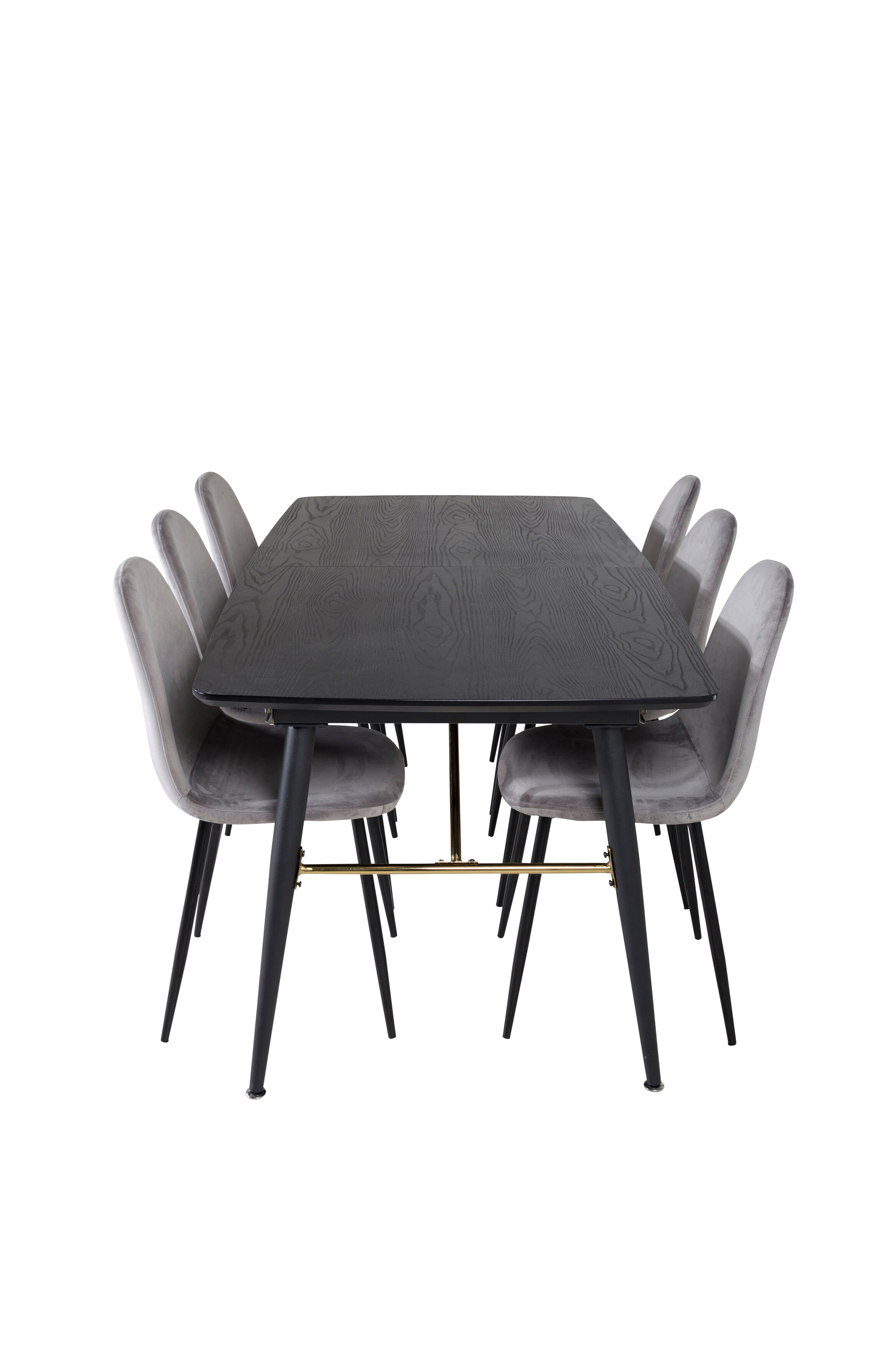 Moderni ja elegantti! Gold-ruokapöytä ja Polar-tuolit muodostavat ruokailuryhmän, joka saa sinut kaipaamaan kotiin. Jatkettavan pöydän alaosassa on ylelliset yksityiskohdat - täydellinen yhdistelmä sinulle, joka haluat näyttävän ruokailuryhmän.