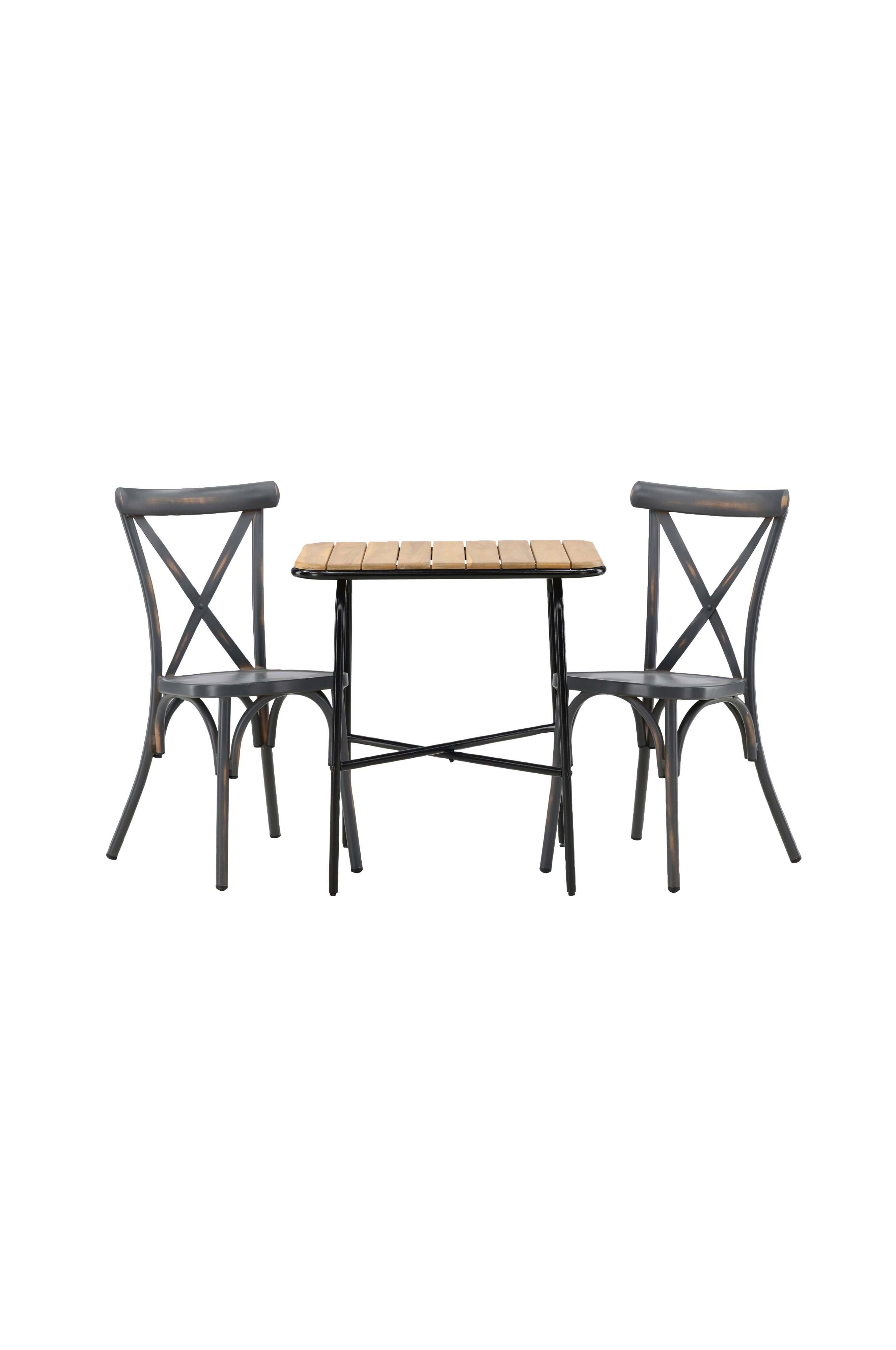 Kulutusta kestävä kahvilaryhmä, jossa huolella harkittu design! Tyylikkäässä Holmbeck-kahvilapöydässä on moderni akasiasäleistä valmistettu pöytälevy ja minimalistinen teräsjalusta. Tässä kokonaisuuteen on yhdistetty 2 Tablas-sarjan ruokapöydän tuolia. Teollishenkiset tuolit on valmistettu kestävästä noenvärisestä alumiinista. Tähän on helppo kattaa tarjoilut ja nauttia rauhallisista hetkistä!