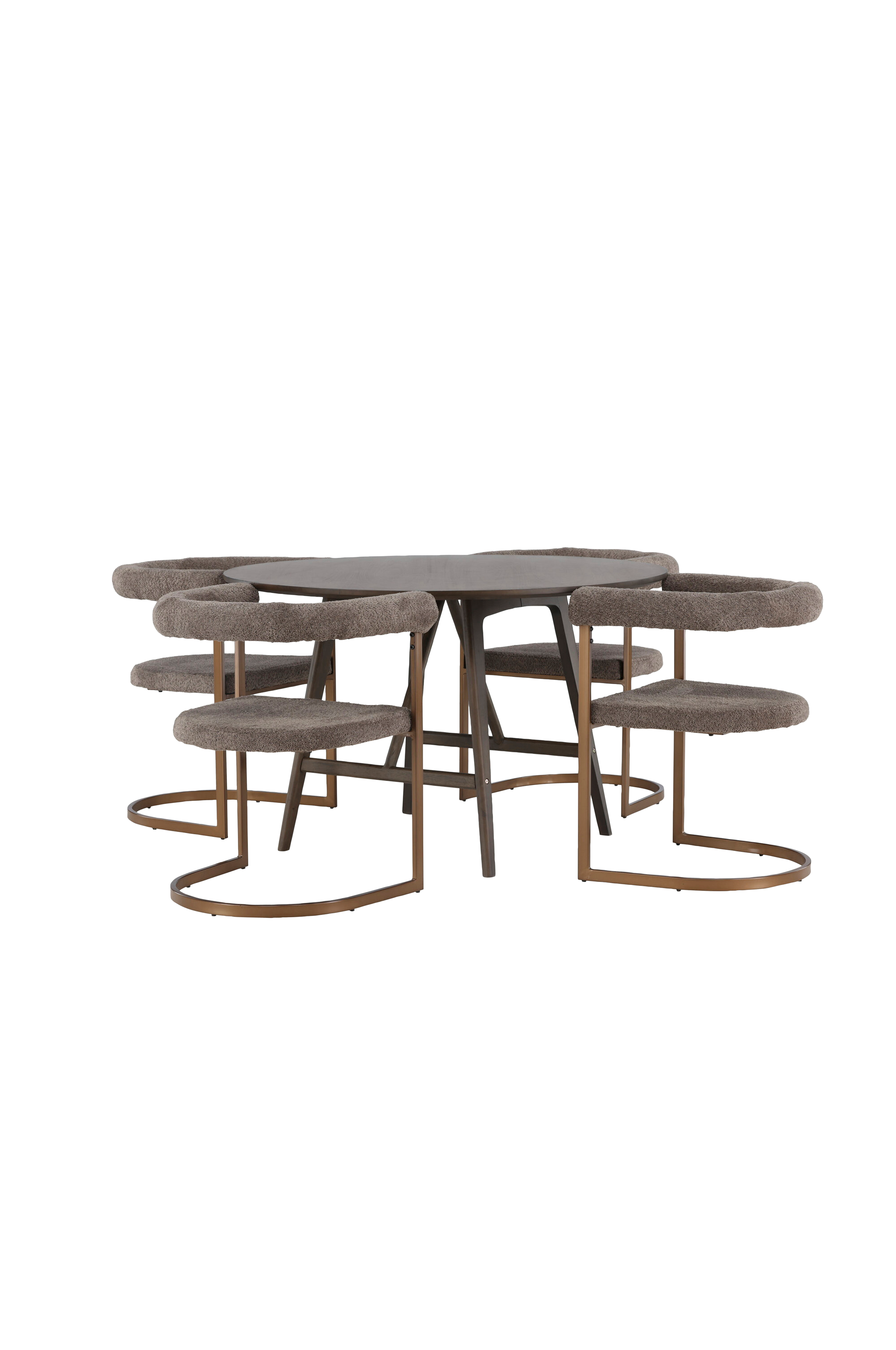 Pyöreässä Kaseidon-ruokapöydässä on tyylikäs muotoilu sekä ohut pöytälevy ja hieman levenevät jalat MDF-levyä ja kumipuuta. Maanläheiset värit antavat pehmeän ja lämpimän tunteen kotiisi. Tässä ruokapöytään on yhdistetty trendikkäät Morning-tuolit. Tuoleissa yhdistyvät mukavuus ja yksinkertainen tyylikkyys parhaalla mahdollisella tavalla. Pyöristetty selkänoja ja pehmustettu bukleekankainen istuinosa tarjoavat ylellisen ja houkuttelevan istumapaikan. Teräksisessä runkorakenteessa on minimalistinen muotoilu, joka viimeistelee pöydän täydellisesti.