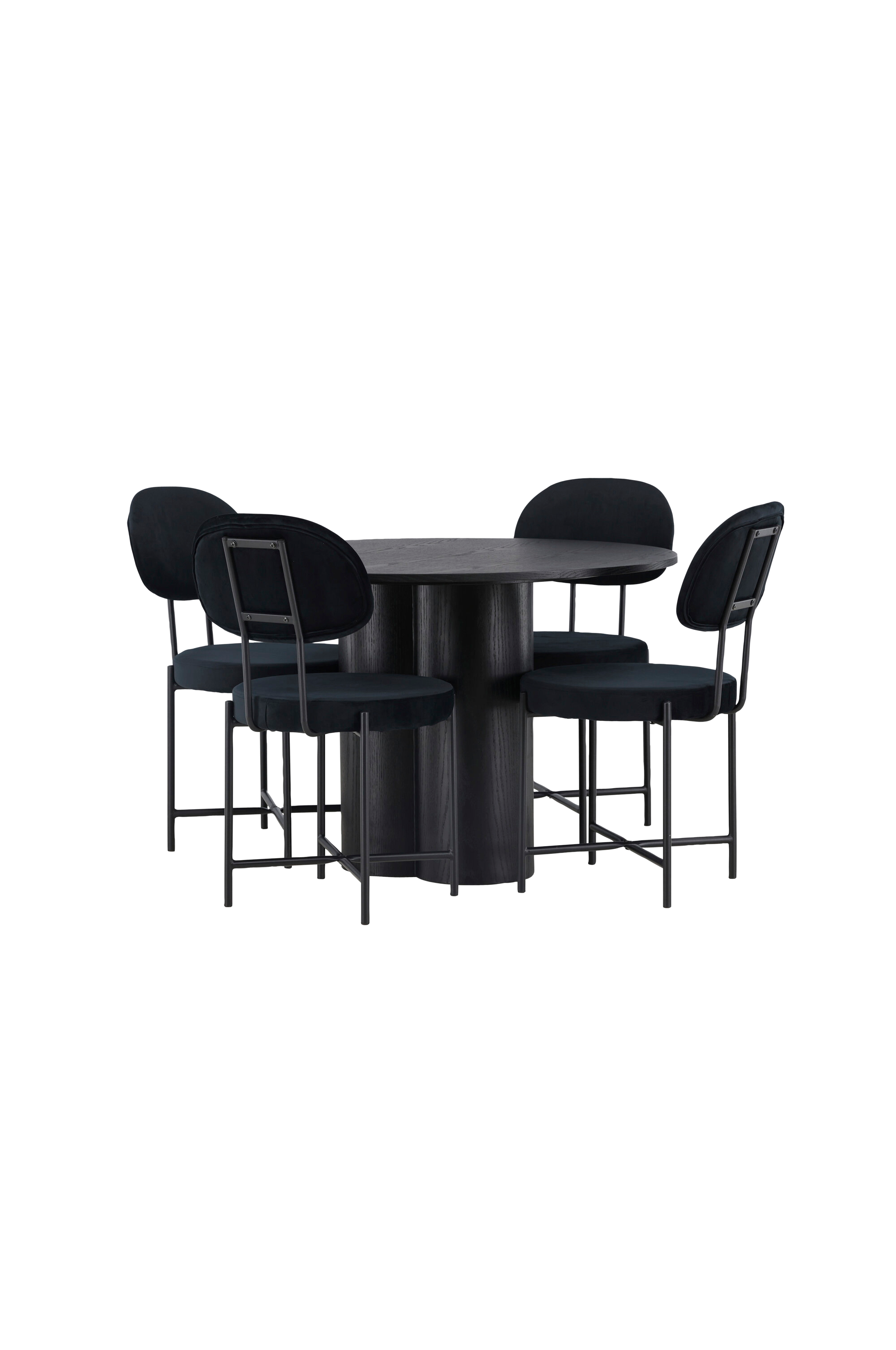Pyöreä Olivia-ruokapöytä on ainutlaatuinen skandinaavisella designillaan ja tyylikkäällä muotoilullaan. Tyylikkään sävyinen Olivia on täydellinen valinta, jolla saat kotiisi modernia ilmettä. Kestävästä MDF-levystä valmistetussa pöydässä on ohut, pyöreä ja tyylikäs pöytälevy sekä kolme lieriönmuotoista jalkaa, jotka on koottu pöydän keskelle. Tässä Olivia-ruokapöytään on yhdistetty trendikkäät Stella-tuolit, jotka viimeistelevät kokonaisuuden. Tuoli ei ole pelkästään tyylikäs, se on myös uskomattoman mukava. Trendikkäästi muotoiltu tuoli sopii täydellisesti Olivia-pöytään. Selkänoja ja pyöreä istuinosa ovat ylellistä ja eleganttia samettia. Minimalistiset teräsjalat täydentävät kokonaisvaikutelman ja tuovat tuoliin modernia ilmettä. Mitä muuta voisi tarvita?