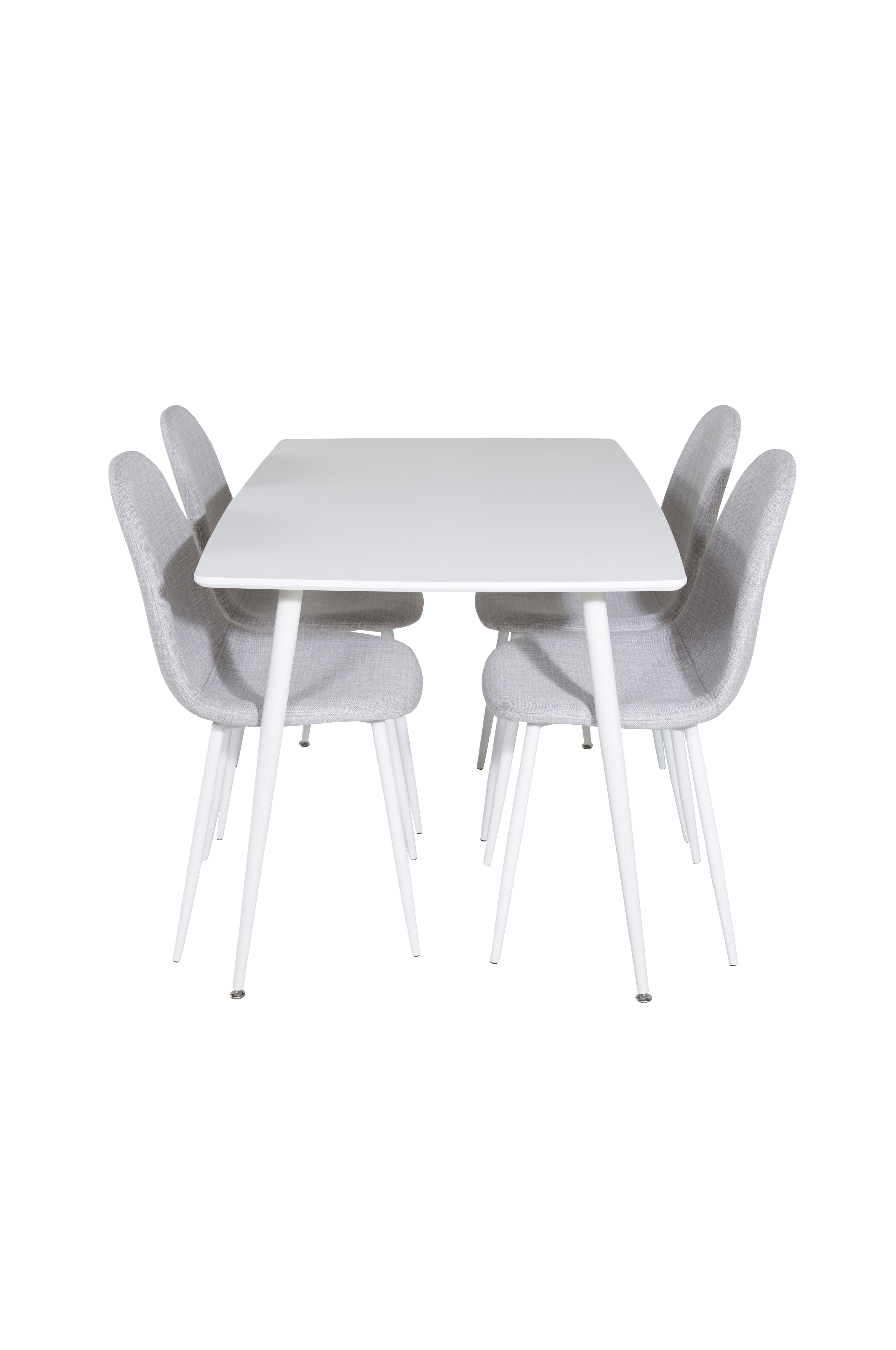 Penally-ruokapöytä, jossa MDF-pöytälevy ja metallijalat. Neljä Penally-tuolia, joissa on istuin polyesteriä ja metallijalat. Pöytä ja tuolit on helppo koota. Pöydän mitat: Pituus: 120 cm, leveys: 80 cm, korkeus: 75 cm. Tuolin mitat: Istuinsyvyys: 39,5 cm, istuinleveys: 41 cm, istuinkorkeus: 45,5 cm.