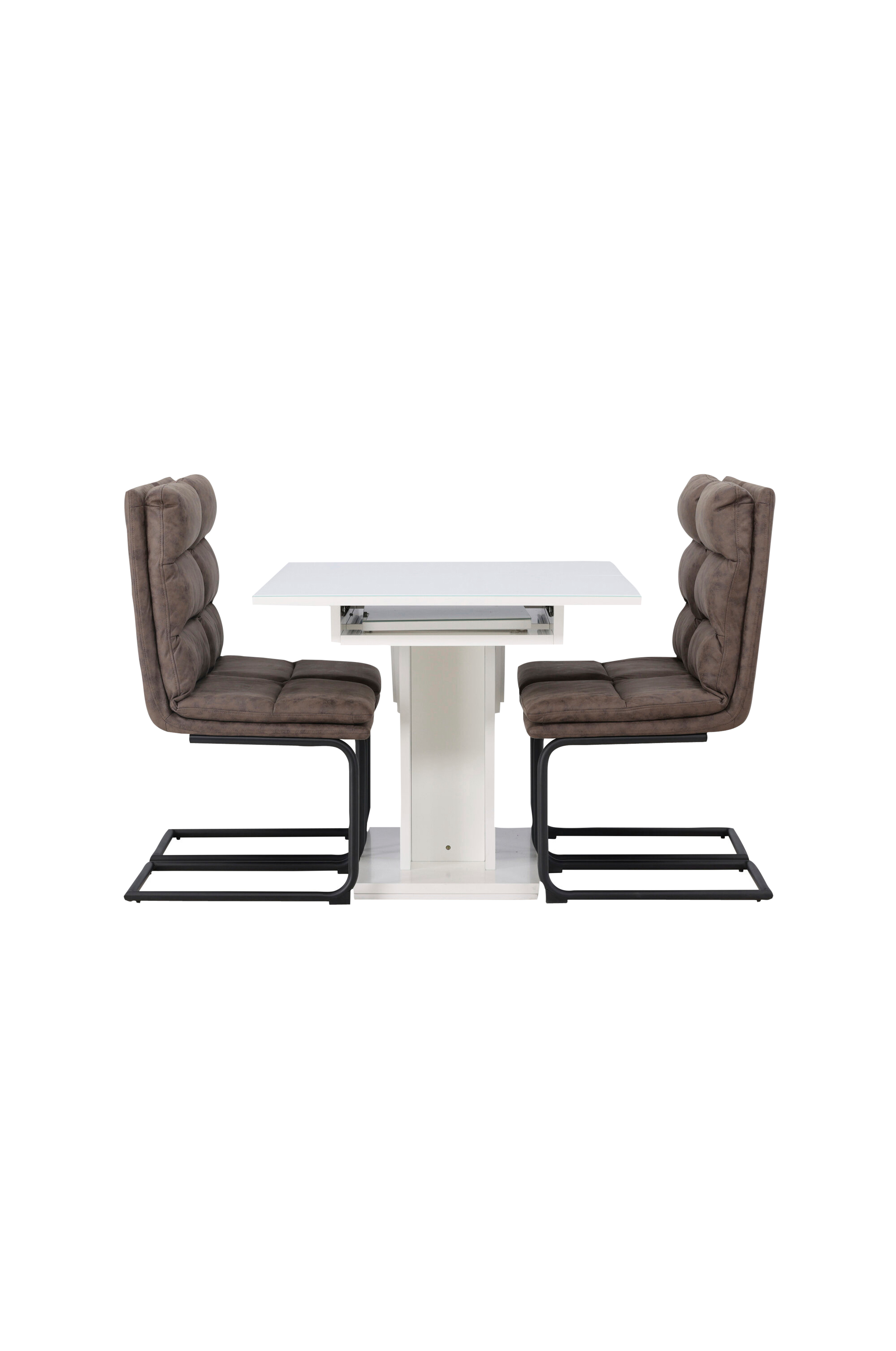 Suorakulmainen Pluto-ruokapöytä mukautuu tarpeisiisi jatkettavalla MDF-pöytälevyllä, jonka päällä on tyylikäs lasilevy. Keskelle sijoitettu tukeva runko tekee pöydästä vakaan ja luotettavan.