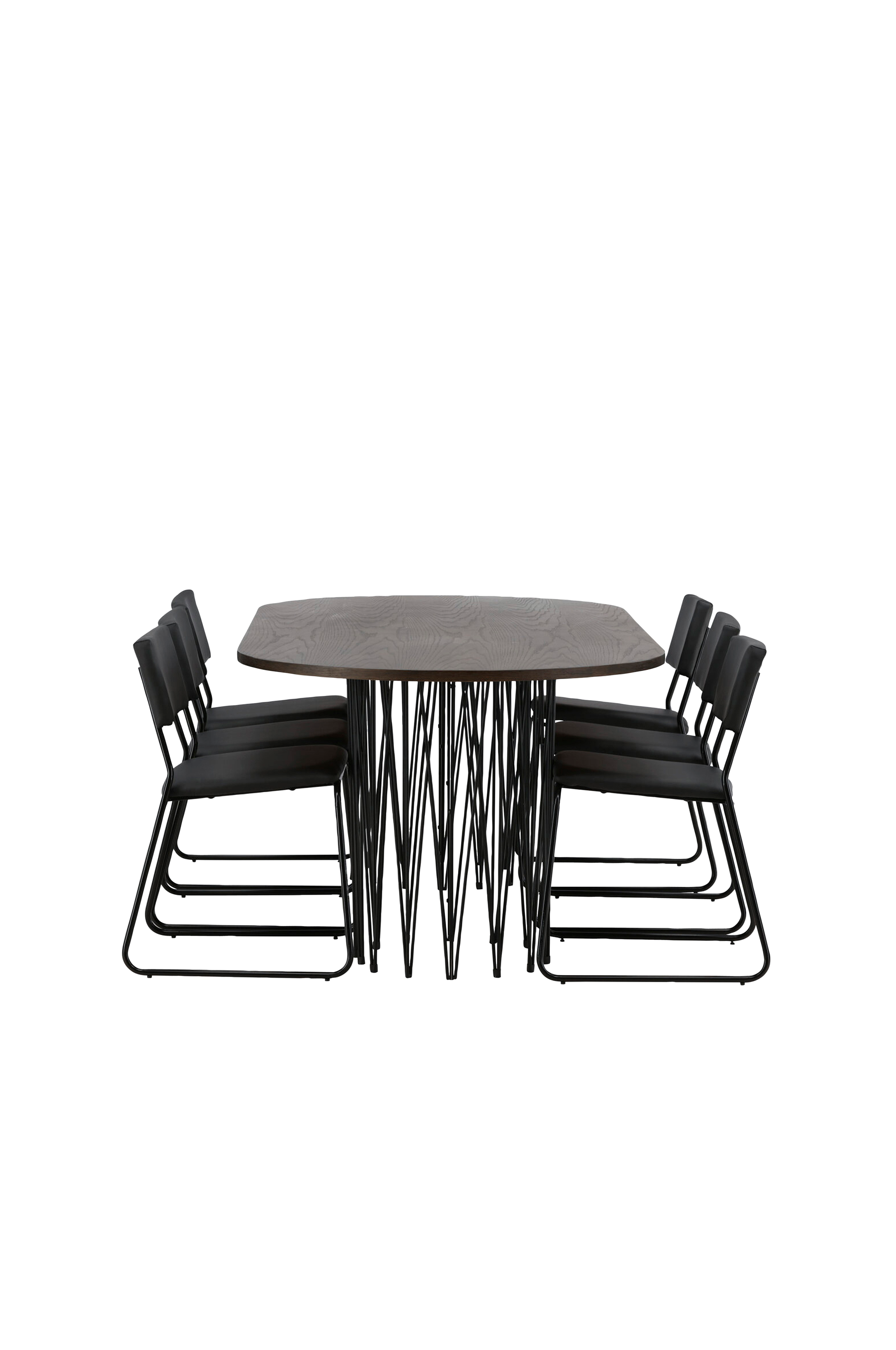 Soikea ruokapöytä on täydellinen, jos haluat luoda kotiisi viihtyisän ja kutsuvan tunnelman! Stone-ruokapöytä luo vaikutuksen muodikkaalla muotoilullaan. Furniture Fashionin mallistoon kuuluvassa ruokapöydässä on kaunis viilutetusta MDF-levystä valmistettu pöytälevy ja kaksi koristeellista lieriönmuotoista metallirunkoa. Tässä pöytään on yhdistetty Venture Designin Kenth-sarjan minimalistiset ruokapöydän tuolit. Tässä pöytään on yhdistetty Venture Designin Kenth-sarjan modernit ruokapöydän tuolit. Tuoleissa on minimalistinen, moderni muotoilu, joka luo ilmavaa tunnelmaa huoneeseen. Selkänoja ja istuinosa ovat polyuretaania ja polyesteriä ja kapeat jalat rautaa. Istu mukavasti ja nauti kodikkaan ruokailuryhmän parissa!