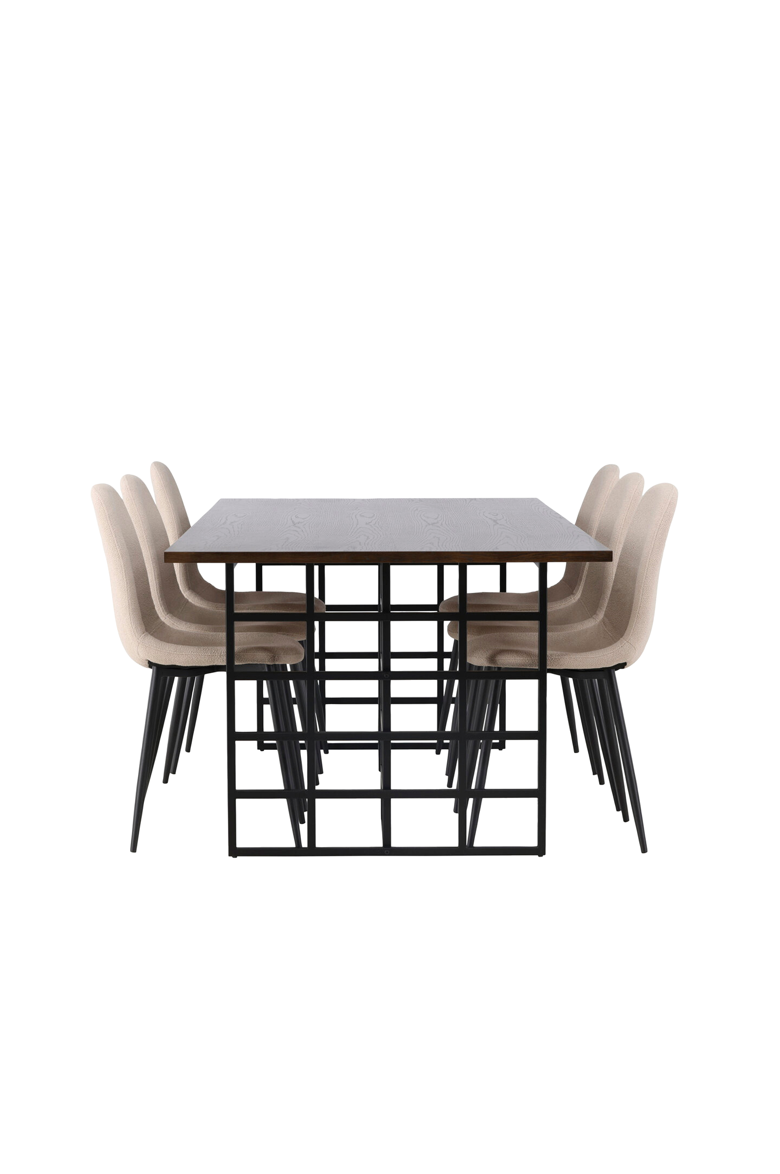 Ystad-sarjan upea ruokapöytä on täydellinen valinta kotisi tyylikkääseen päivitykseen. Ajattomassa ja hienostuneessa Ystad-ruokapöydässä on suorakaiteenmuotoinen pöytälevy kaunista MDF-levyä ja tammiviilua. Ruokapöydän viimeistelee kaksi koristeellista, teollishenkistä metallirunkoa. Polar-sarjan ruokapöydän tuolit täydentävät ruokailuryhmän. Tuolit tekevät vaikutuksen verhoilullaan ja jauhemaalatuilla metallijaloillaan. Pyöristetty selkänoja ja pehmeällä bukleekankaalla verhoiltu istuinosa tarjoavat vastustamatonta mukavuutta ja houkuttelevat pitkiin ja nautinnollisiin illallisiin.