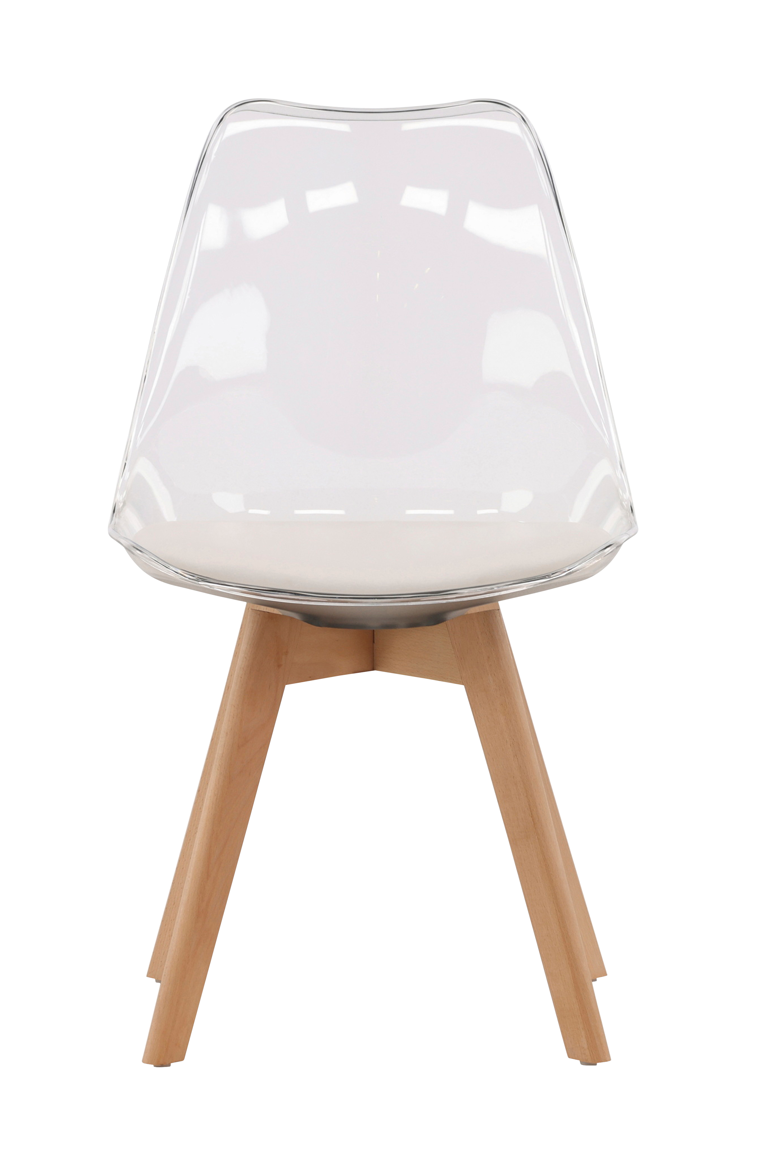 Luo moderni katseenvangitsija ja miellyttävä tunnelma olohuoneeseen Edvin-sarjan upeilla ruokapöydän tuoleilla! Ilmeikäs tuoli henkii trendikkyyttä kodissasi. Läpikuultava istuin on PET-muovia ja istuintyyny lisää mukavuutta. Puunväriset, hieman levenevät jalat. Yhdistä tyylikkääseen ruokapöytään ja luo täydellinen ruokailuryhmä, jossa läheisesi voivat kokoontua!