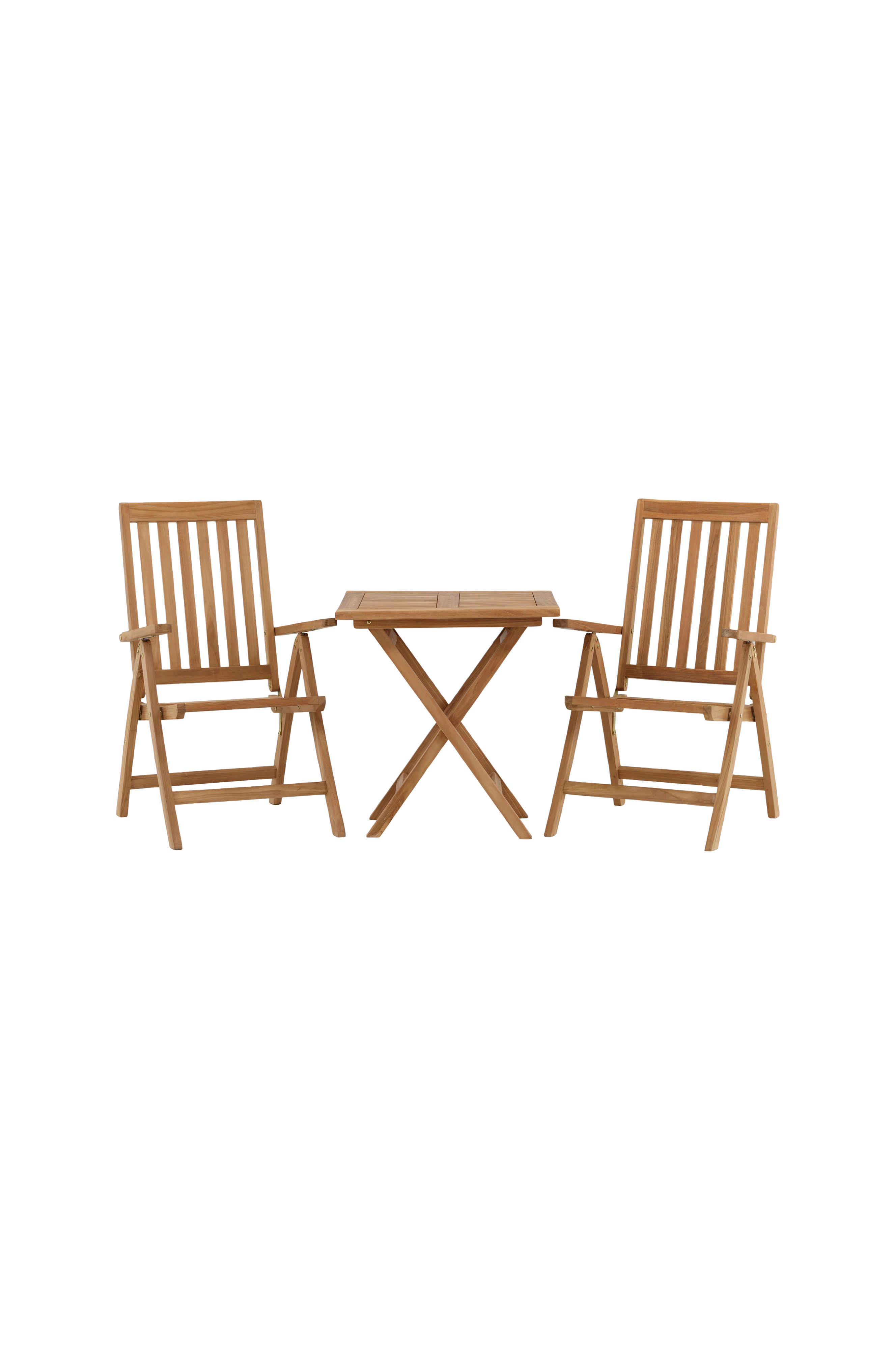 Kenya-sarjan viihtyisä kahvilaryhmä on juuri sitä, mitä ulkotilasi tarvitsee! Kauniista tiikistä valmistettu kokoontaitettava pöytä on täydellinen kesän kaikille aamiaisille ja iltapäivän kahvihetkille ulkona. Klassisen ilmeensä ja kätevän muotoilunsa ansiosta pöytä on helposti yhdistettävissä ja siirrettävissä ympäriinsä. Mitat: 70 x 70 cm. Tuolit voi taittaa useaan eri asentoon, ja niissä on miellyttävät käsinojat. Tyylikäs tiikki ja sälemuotoilu luovat erittäin modernin vaikutelman. Tee pöydän ääressä vietetystä hetkestä päivän kohokohta!