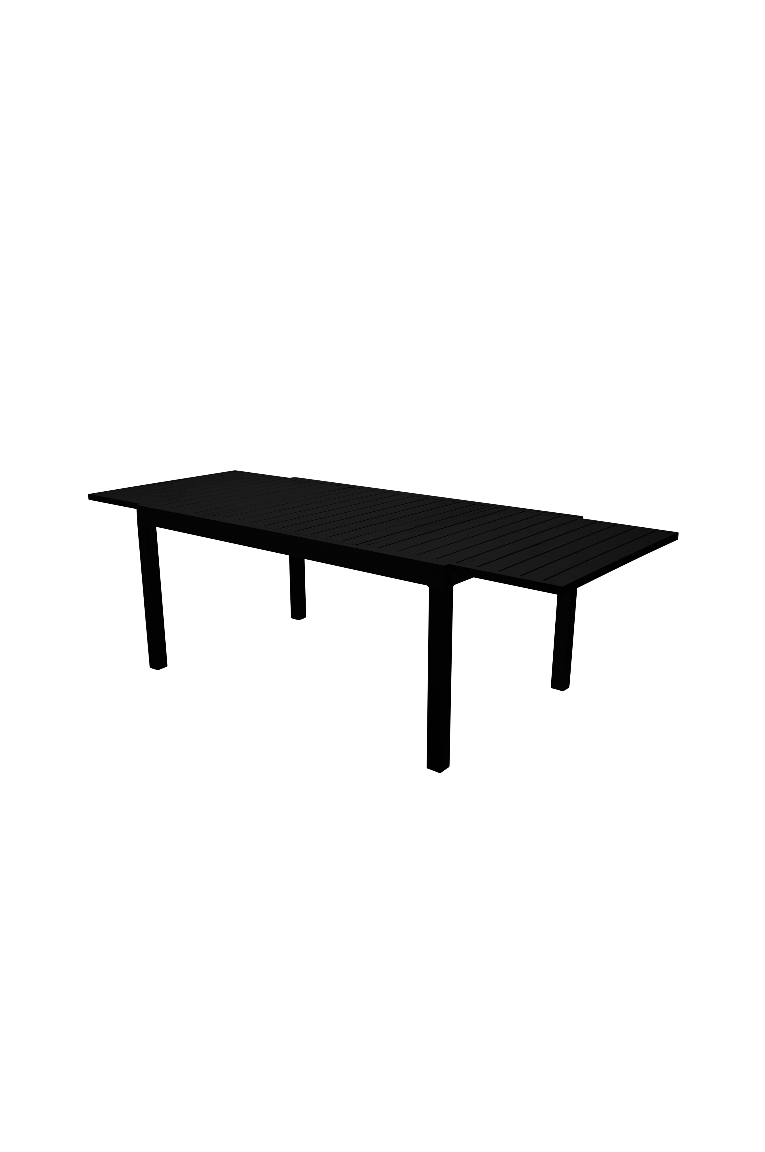 Jatkettava Malaga-ruokapöytä mustaa alumiinia. Mukana jatkolevy, jolle on säilytyspaikka pöydässä. Pöydän mitat: Pituus: 160/240 cm, leveys: 100 cm, korkeus: 74 cm. Jatkolevy mukana. Pöytä on helppo koota.