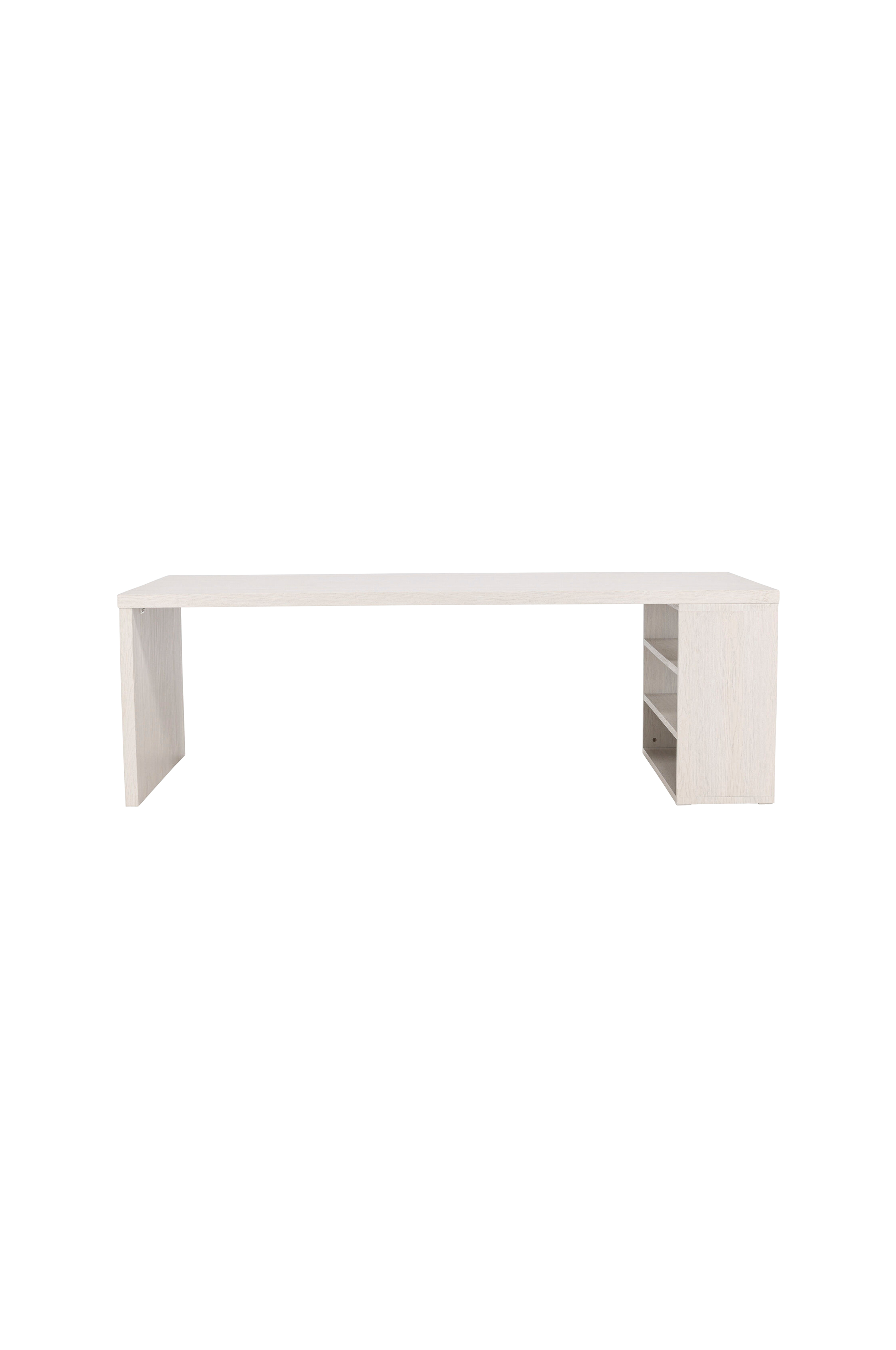 Mitoiltaan reilut 230x110 cm, mika -ruokapöytä tarjoaa runsaasti tilaa perheelle ja ystäville kokoontua nauttimaan ihanista aterioista ja keskusteluista. Sen sivussa oleva säilytyshylly tarjoaa ylimääräistä käytännöllistä tilaa suosikkiesineiden järjestämiseen ja esillepanoon.