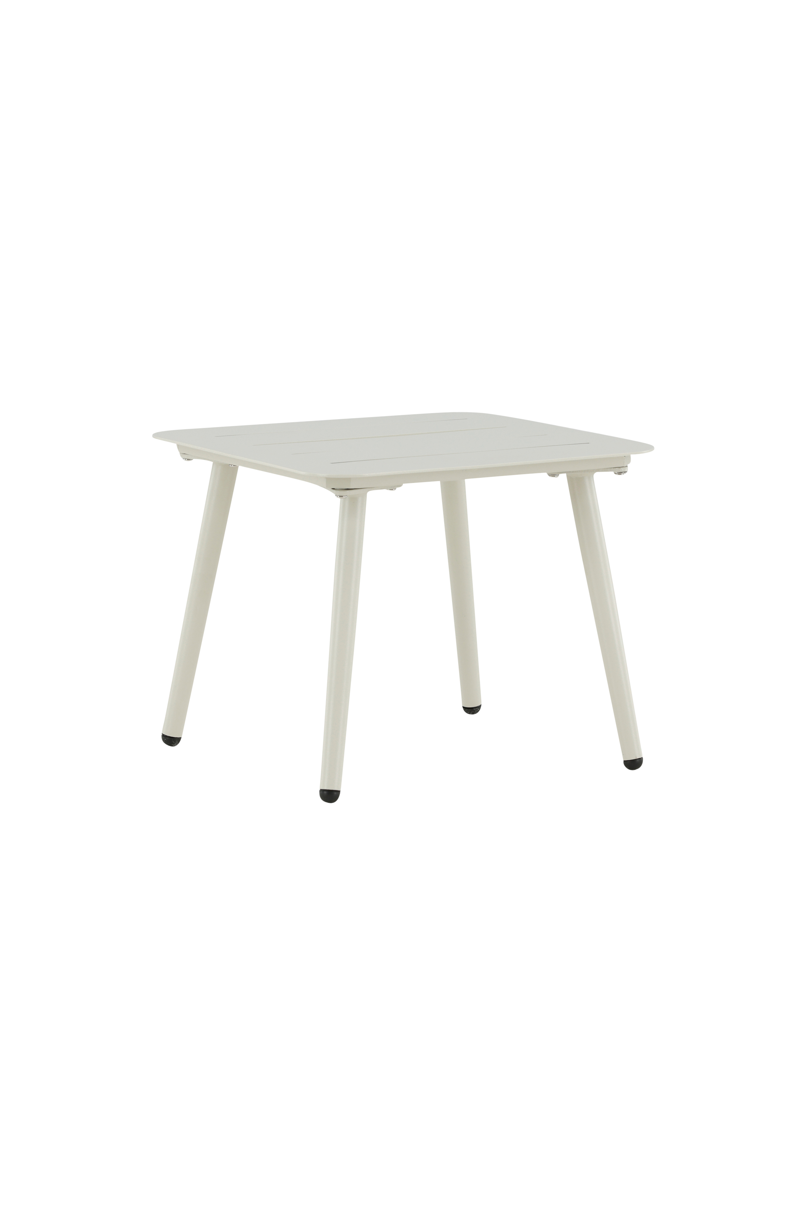 Lina-sivupöytä, jossa alumiinipöytälevy ja teräsjalat. Pöytä on helppo koota. Pöydän mitat: Pituus: 40 cm, leveys: 40 cm, korkeus: 33 cm.