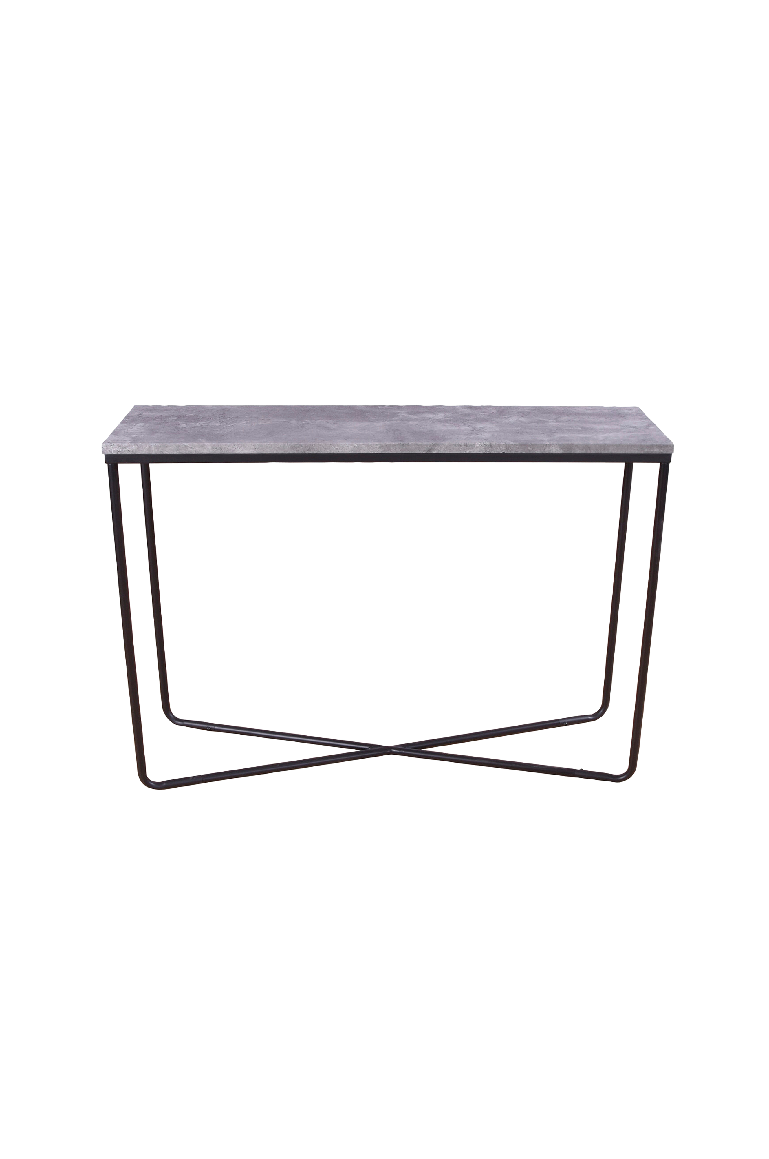 Tyylikäs sivupöytä, jonka pöytälevy betonin näköistä MDF-levyä. Valkoinen metallijalusta. Tyylikäs huonekalu, joka sopii kaikkiin koteihin! Leveys: 30 cm Korkeus: 80 cm Pituus: 110 cm Helppo koota.