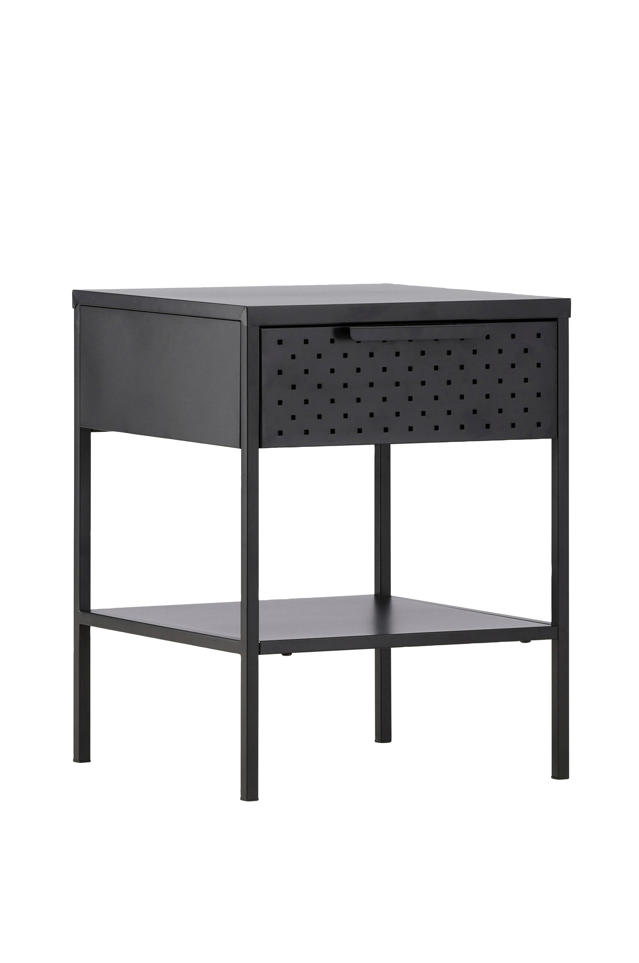 Sacramento-sivupöytä muuttaa makuuhuoneen järjestyksen ja tyylikkään muotoilun tyyssijaksi. Modernin pohjoismaisen muotoilun ja selkeiden linjojen ansiosta sivupöytä tarjoaa täydellisen tasapainon toiminnallisuuden ja estetiikan välillä! Sivupöydän laatikko on kätevä säilytystila, jossa sinulla on kaikki tarvitsemasi helposti ulottuvillasi. Alahyllyllä voit säilyttää suosikkikirjaa tai muita kauniita sisustusesineitä ja antaa persoonallisuutesi näkyä. Jauhemaalattu teräs antaa sivupöydälle ripauksen eleganssia ja tekee siitä helposti yhdistettävän muuhun sisustukseen. Jokainen yksityiskohta on huolellisesti muotoiltu luomaan harmonisen tunnelman huoneeseen.