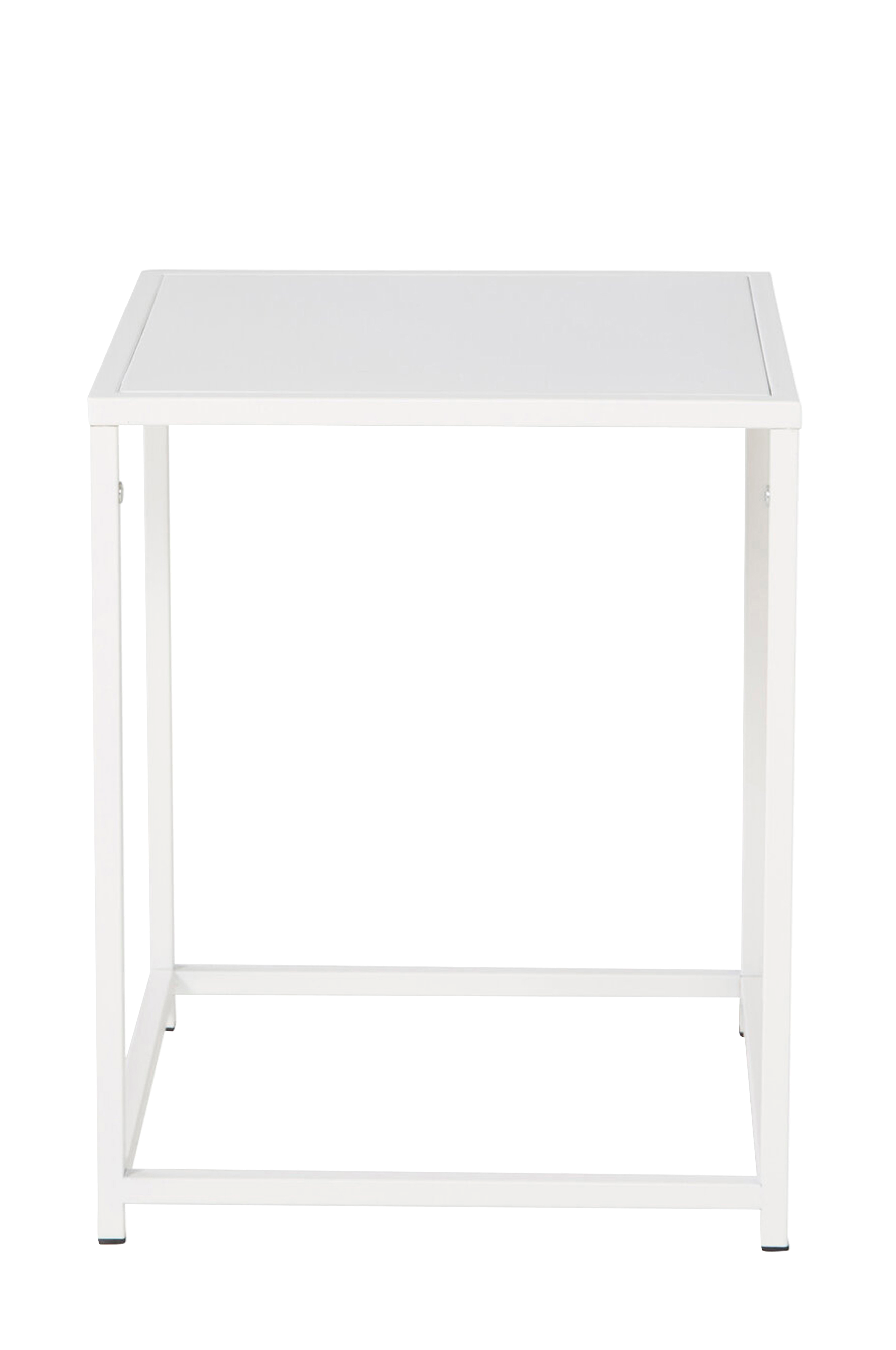 Sila-sivupöytä terästä. Nelikulmainen malli. Erinomainen laskutaso tai paikka kauniille koriste-esineelle. Mitat 37 x 38, korkeus 46 cm. Koottava.