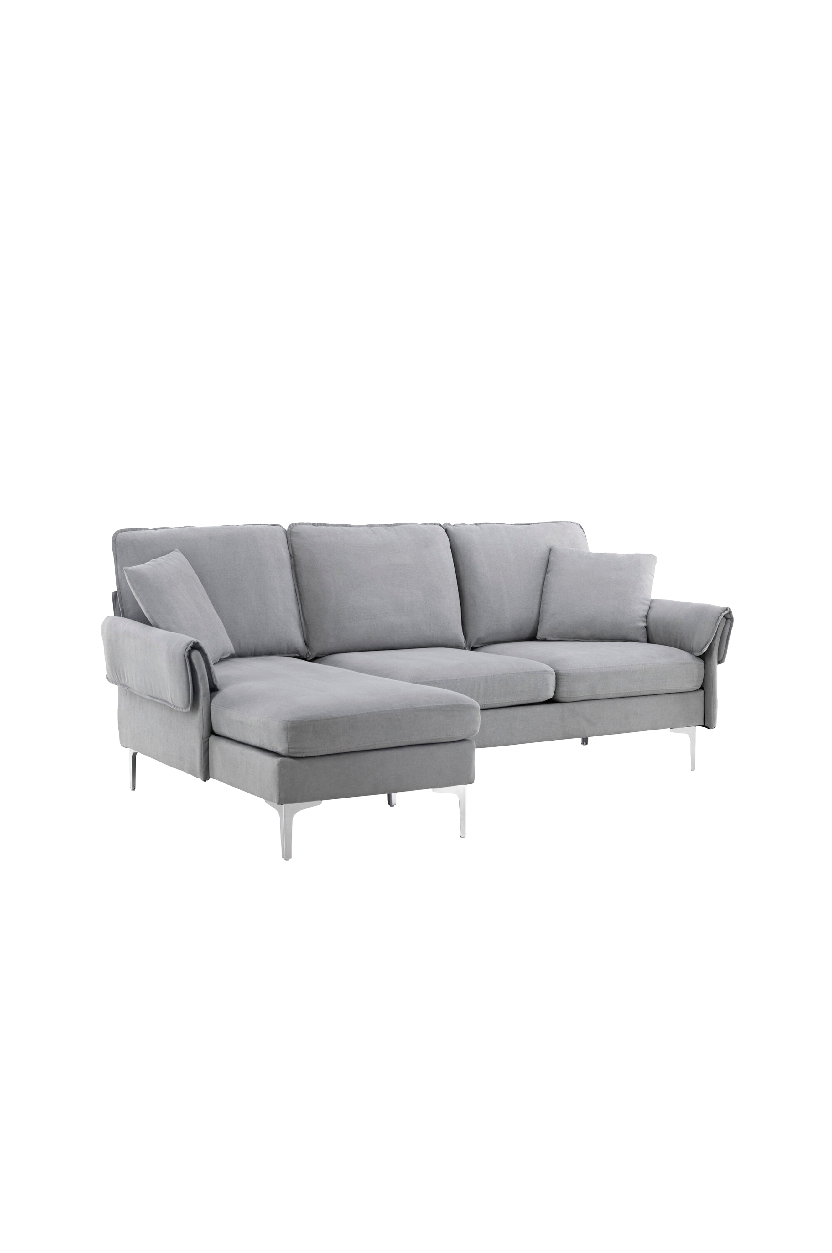 Toulouse-sarjan divaanisohva on täydellinen yhdistelmä tyyliä ja mukavuutta! 2-3:n istuttava sohva sopii erinomaisesti useimpiin koteihin, ja tuntuu reilulta ja kutsuvalta suhteellisen pienestä koostaan huolimatta. Sohvassa on upea divaani, joka voidaan asettaa sekä oikealle että vasemmalle puolelle. Harmaa polyesterikangas on helppo pitää raikkaana hoito-ohjeidemme avulla, ja se on myös miellyttävä katseenvangitsija, joka sopii helposti yhteen muun sisustuksen kanssa. Kapeat krominväriset metallijalat antavat sohvalle tyylikkään ja käytännöllisen kohotuksen. Aseta sohvalle värikkäitä tyynyjä luodaksesi eloisan vaikutelman tai koristele tyylikkäillä väreillä pitääksesi ilmeen minimalistisena. Valitse itse haluamasi tyyli!
