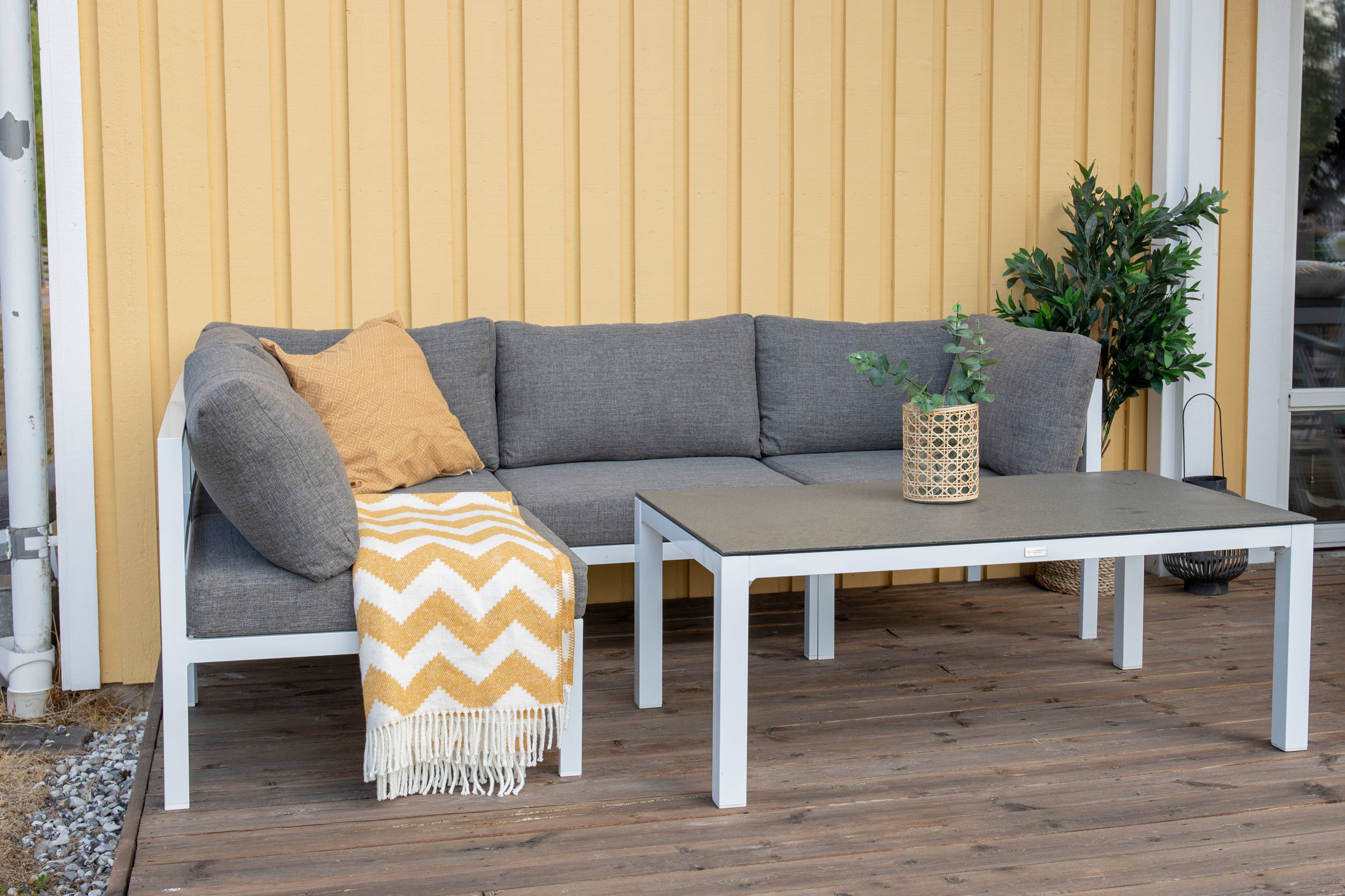 Cassie-sohvapöytä alumiinia ja Spraystone-lasia. Sohvapöydän mitat: Pituus: 120 cm, leveys: 70 cm, korkeus: 45 cm. Helppo koota.
