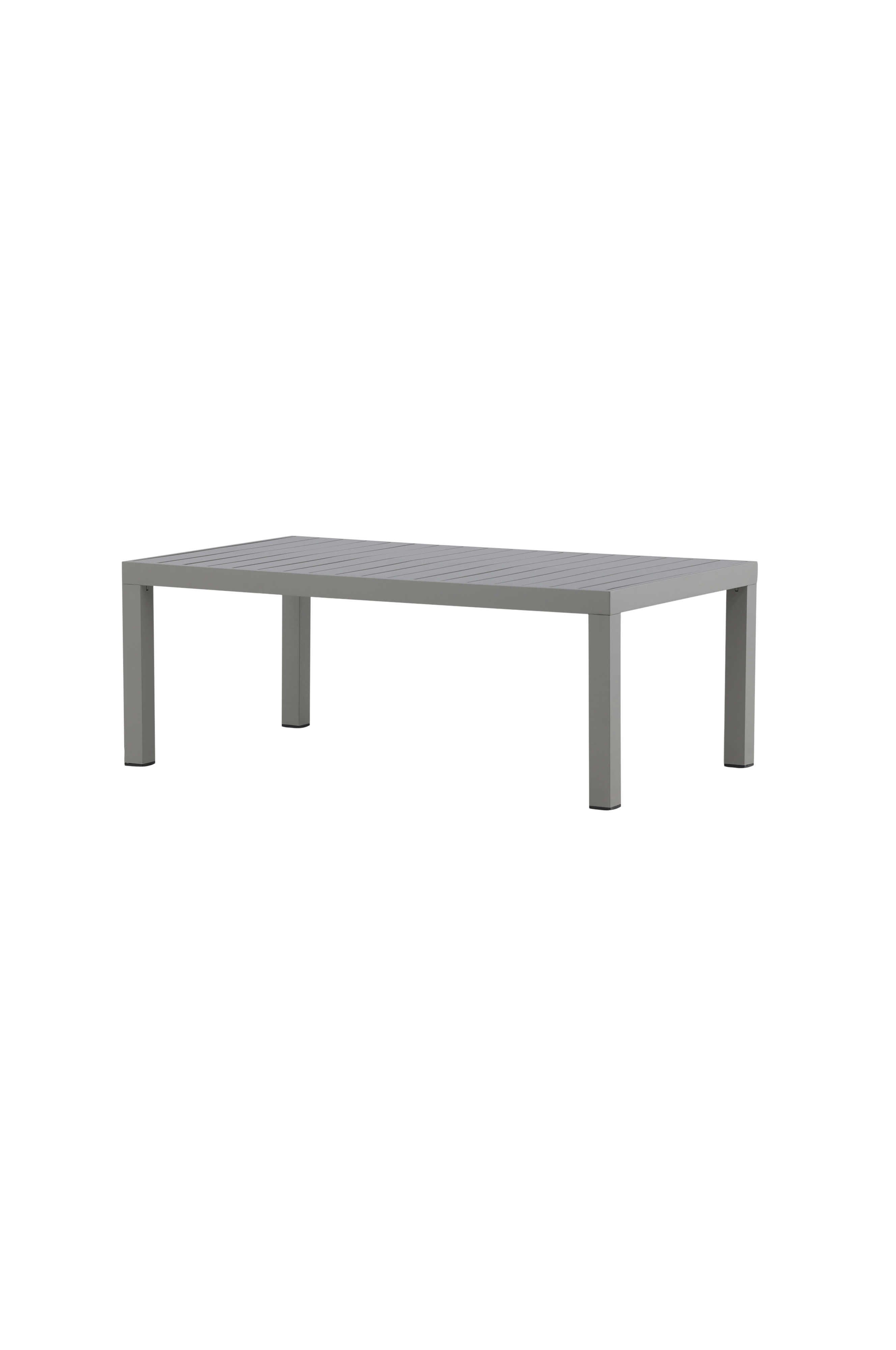 Copacabana-sohvapöytä, jossa alumiinipöytälevy ja alumiinijalat. Pöytä on helppo koota. Pöydän mitat: Pituus: 120 cm, leveys: 70 cm, korkeus: 45 cm.