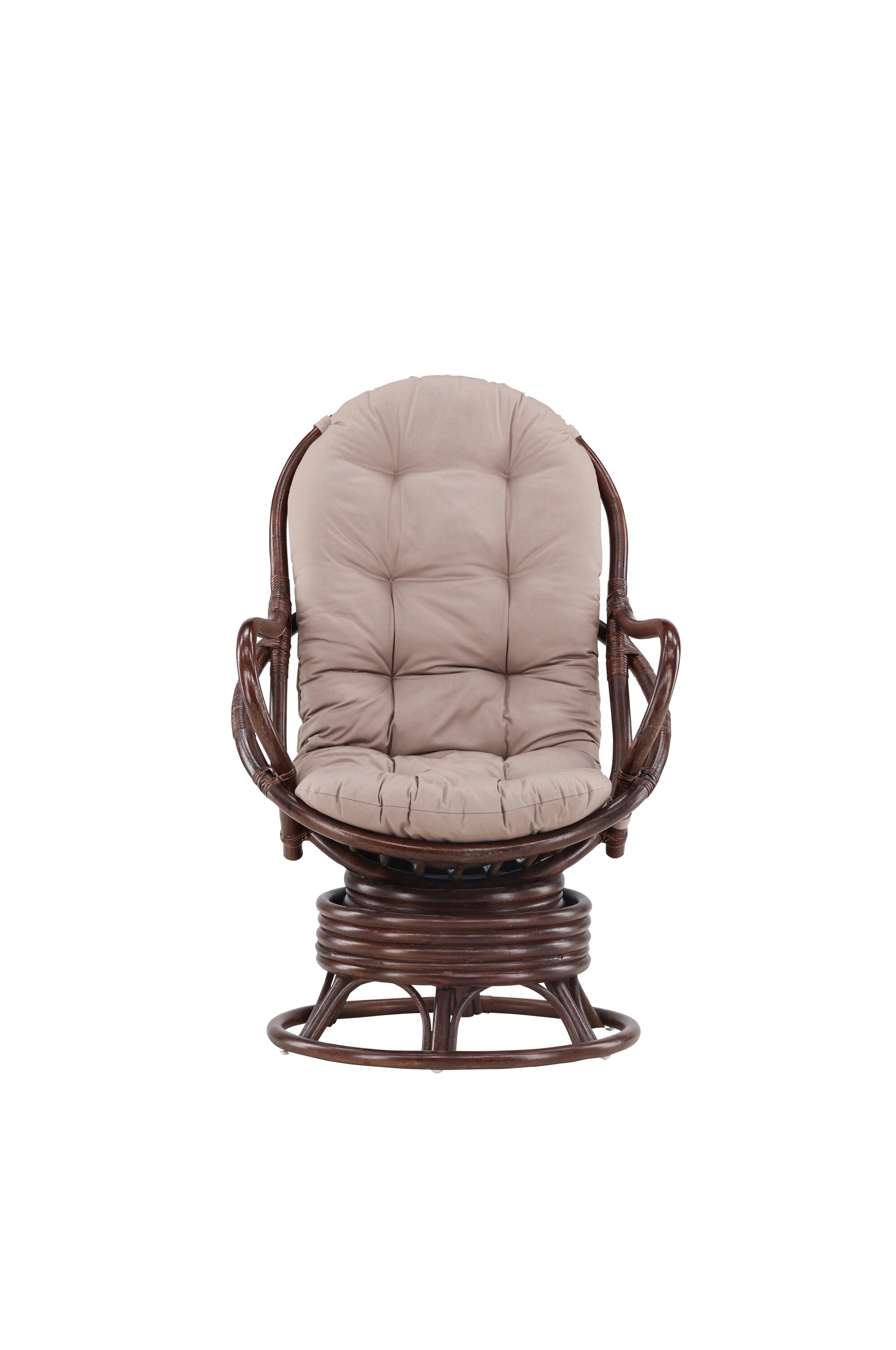 Kauniista rottingista valmistetulla swing-loungetuolilla saat ulkotilaasi tyylikkyyttä ja mukavuutta. Syvä tumma pähkinäpuun väri luo hienostuneen ja lämpimän ilmapiirin, kun taas mukana tuleva beige tyyny lisää istuinkokemukseen pehmeyttä ja tyyliä.
