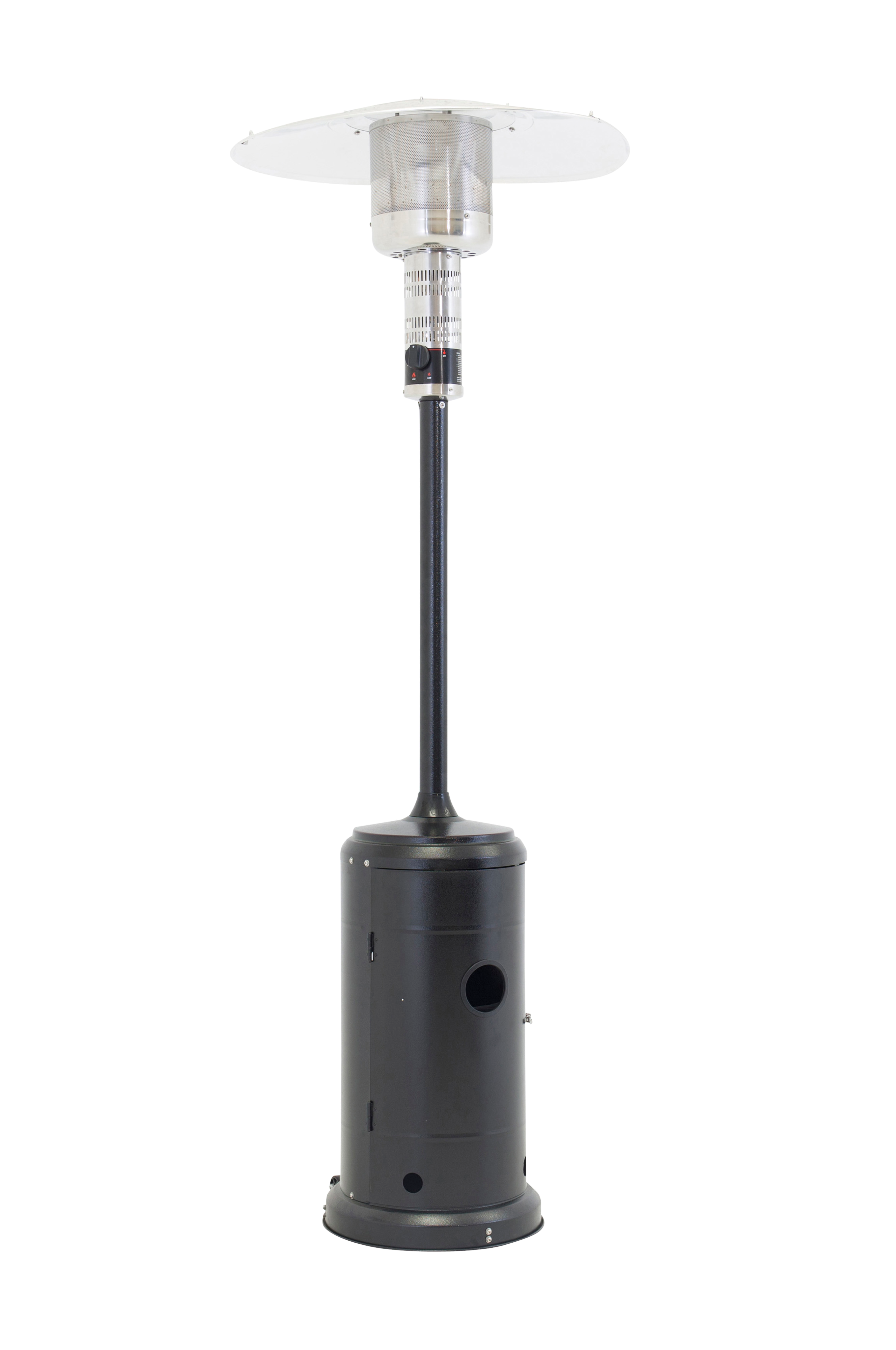 Tyylikäs terassilämmitin. Korkeus 225, halkaisija 81,5 cm. Kaasupullo, letku ja regulaattori eivät sisälly toimitukseen. Koottava.
