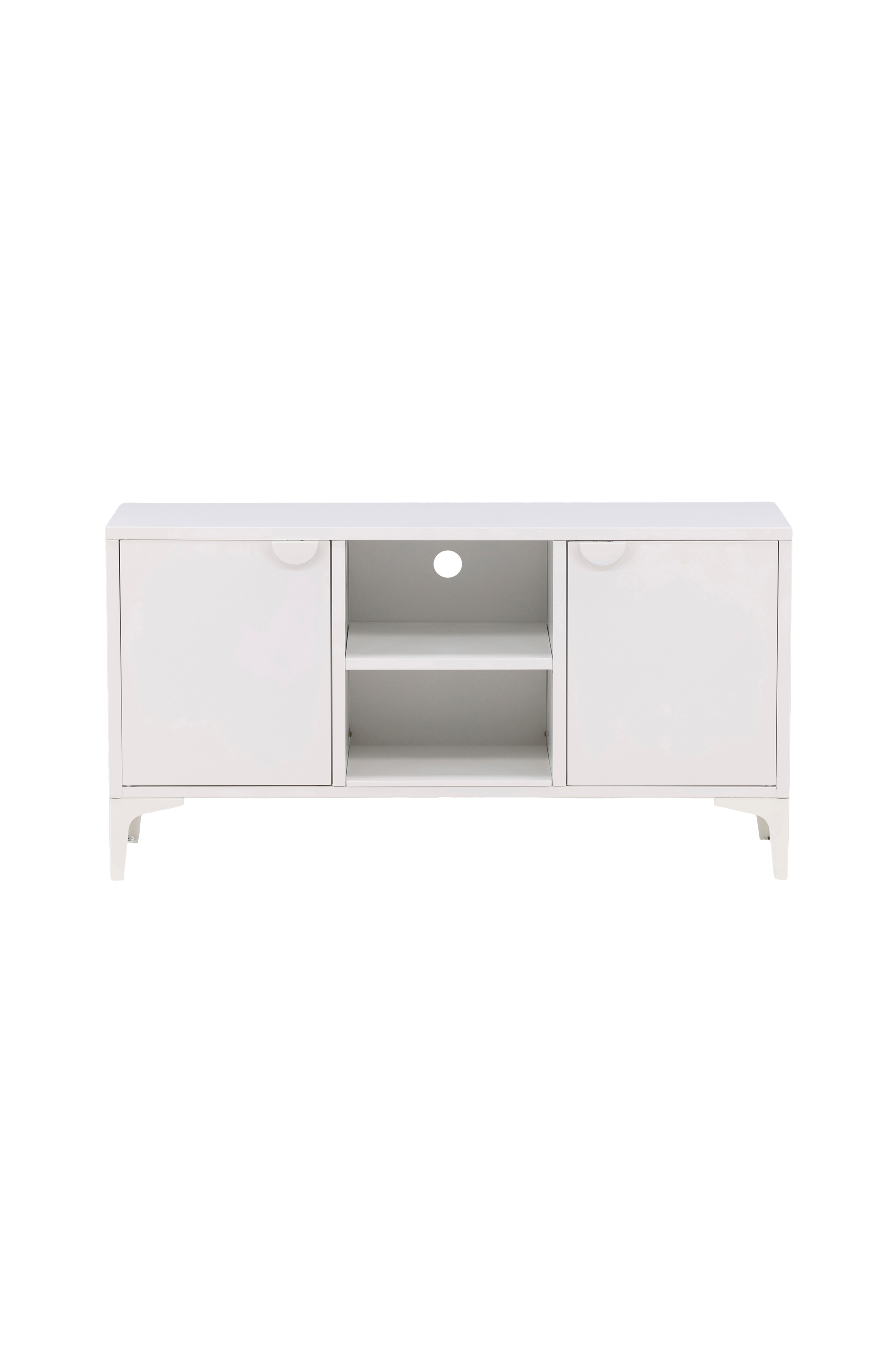 Täydellinen tv-taso moderniin älykotiin! Piring-sarjan tv-taso on valmistettu valkoisesta teräksestä. Käytännöllinen syvyys antaa paljon säilytystilaa. Tv-tasossa on kaksi hyllytasoa ja kaksi ovea piilossa säilytettäville tavaroille sekä keskiosa, jossa on avoin säilytystila - täydellinen tyylikkäille yksityiskohdille, kuten modernille maljakolle tai kirjalle. Erittäin harkitusti muotoiltu kaluste on sekä trendikäs että ajaton!
