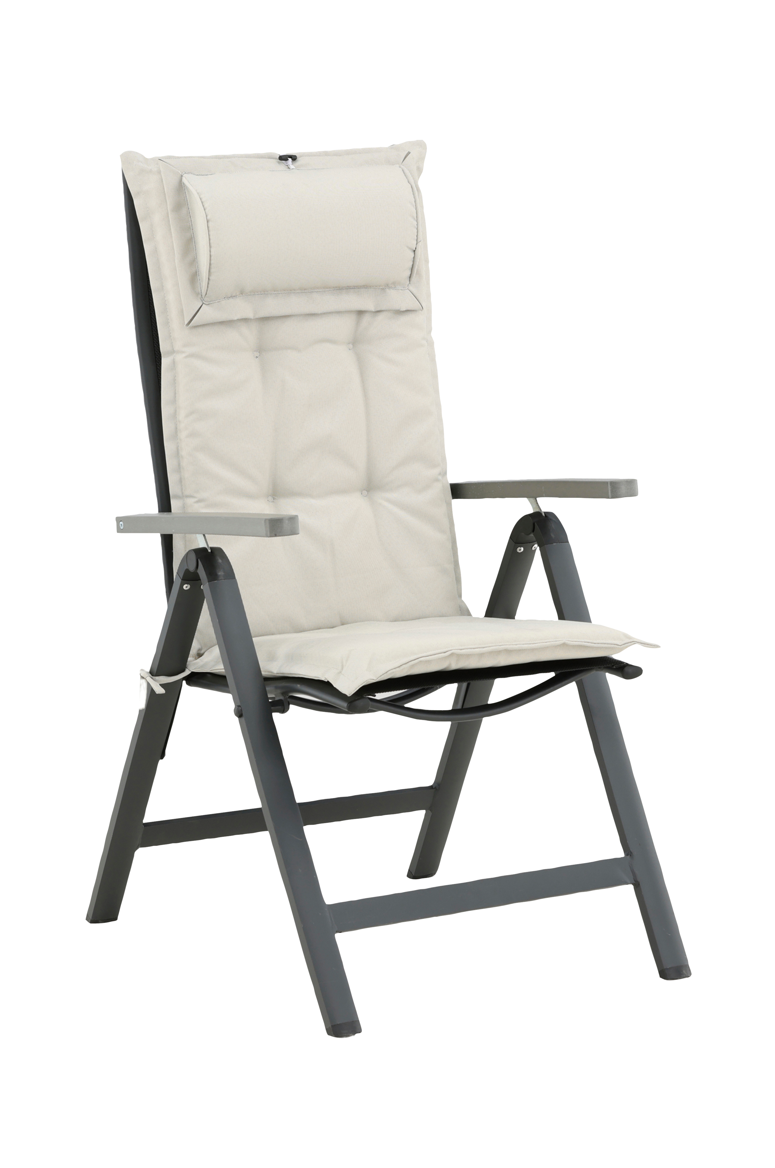 Tukeva tuolityyny ulkokalusteisiin! Tyynyn sivussa on hihnat, jotka pitävät tyynyn paikallaan.